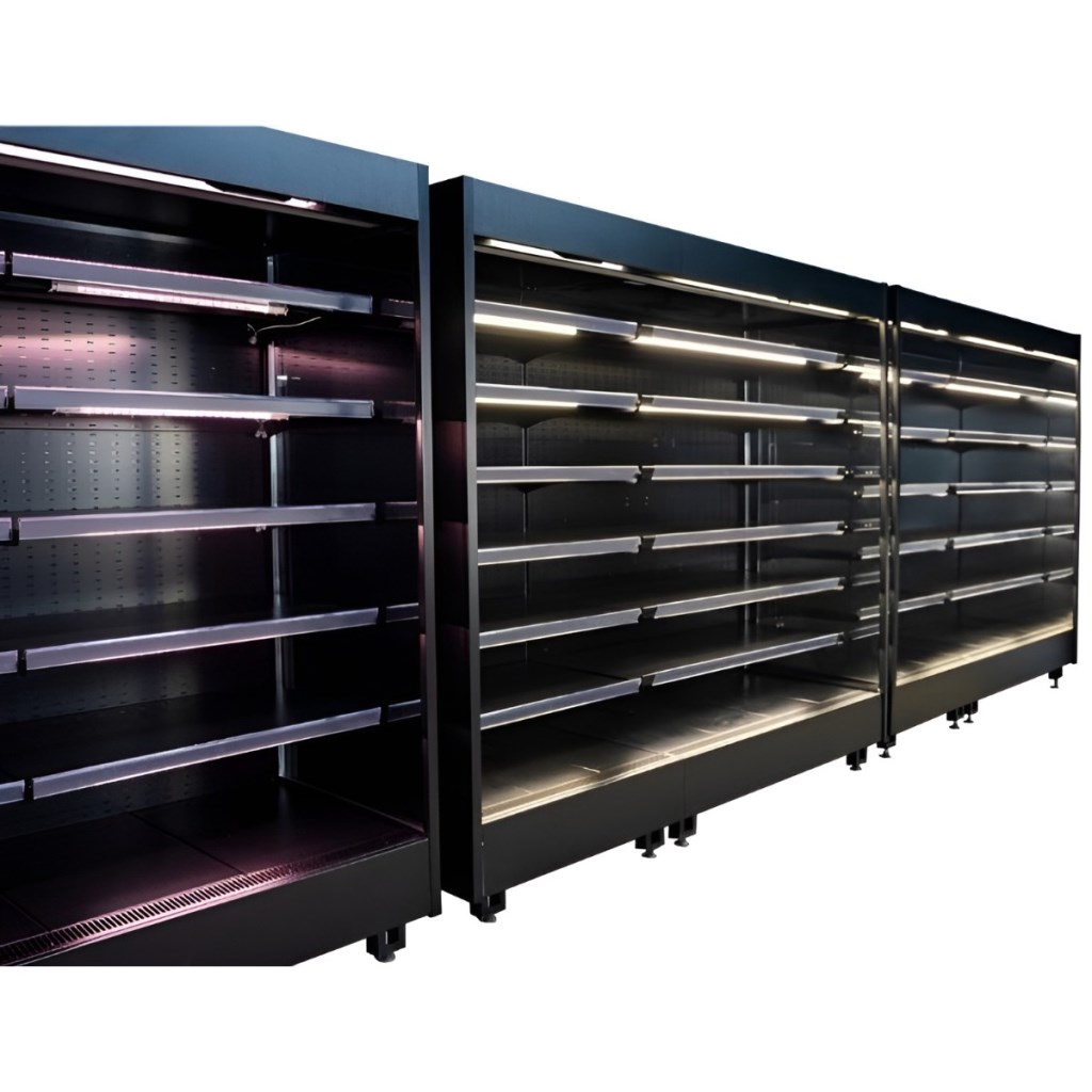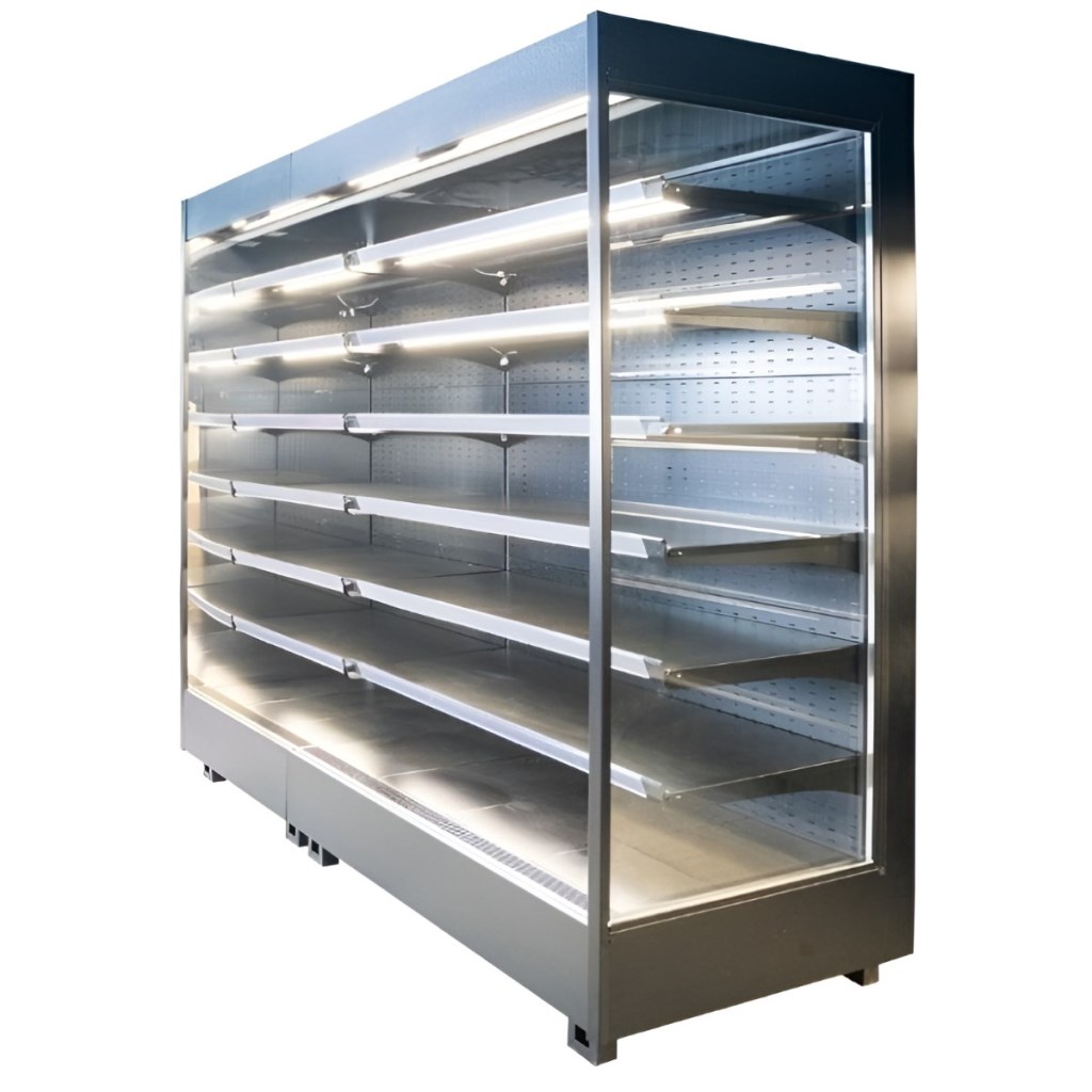 Система воздушной завесы предотвращает попадание тёплого воздуха внутрь витрины, обеспечивая стабильный температурный режим даже при интенсивной эксплуатации. Встроенное LED-освещение делает выкладку яркой и привлекательной, при этом потребляет минимум электроэнергии.