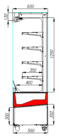 Модель оснащена четырьмя рядами перфорированных полок, которые пропускают свет и обеспечивают оптимальную визуальную презентацию продукции. Горка оборудована ночными шторками и четырьмя колесами для удобного перемещения. Корпус выполнен из нержавеющей стали с теплоизоляцией из пенополиуретана, боковые панели — из закалённого стекла с 100% обзором.