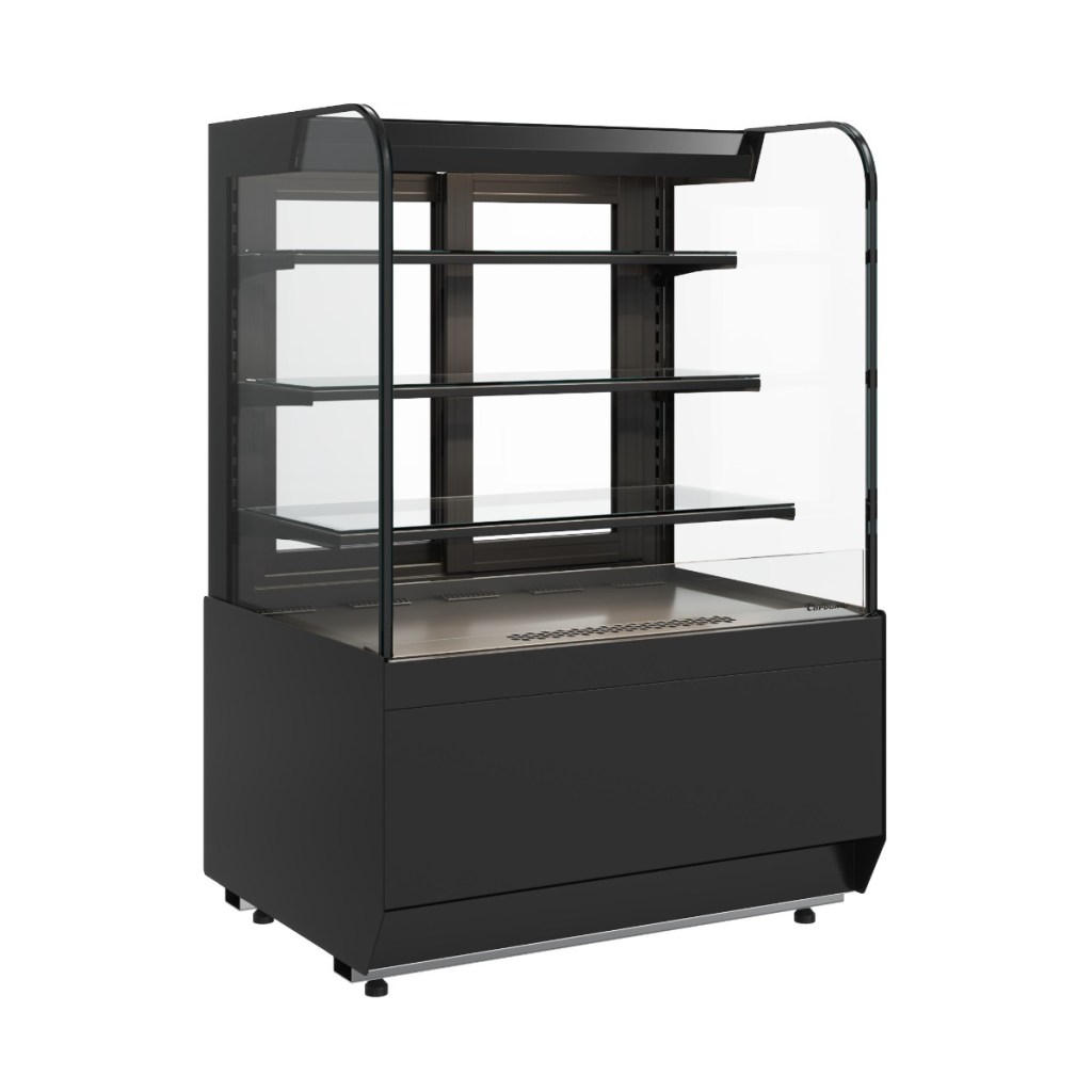 Витрина кондитерская Carboma KR70 VM 1,3‑2 Standard (9005) открытая предназначенная для охлаждённого хранения и демонстрации десертов, напитков, выпечки и кондитерских изделий. Благодаря динамической системе охлаждения обеспечивается равномерное распределение температуры по всей площади выкладки, что гарантирует сохранность вкуса и внешнего вида продуктов.