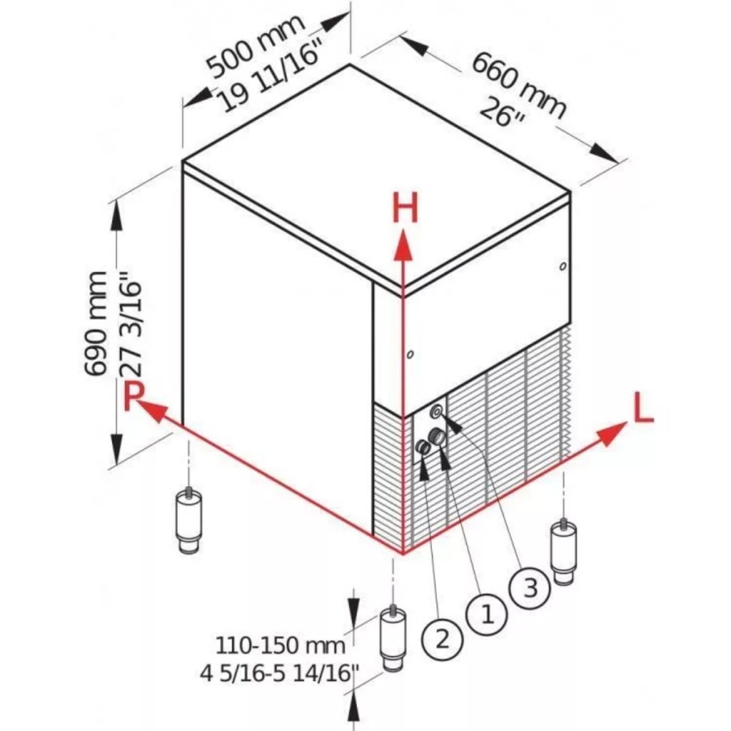 Модель производит до 90 кг льда в сутки, а вместительный бункер позволяет хранить готовый лед для бесперебойной работы. Крошковый лед быстро охлаждает жидкости, не разбавляя их, что делает его идеальным для коктейлей, десертов и подачи свежих морепродуктов. Использование экологичного хладагента R290 снижает энергопотребление и безопасно для окружающей среды.