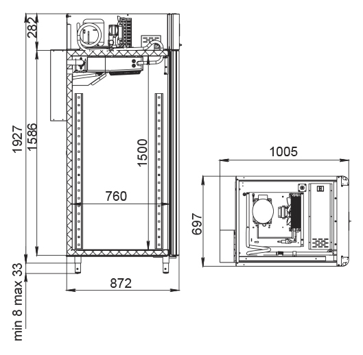 Каталог оборудования Холодильное оборудованиеШкафы холодильныеСпециализированные холодильные шкафыШкаф холодильный для вызревания сыра Polair CS107 Cheese полки нерж., со стеклом Шкаф холодильный для вызревания сыра Polair CS107 Cheese полки нерж., со стеклом Код товара: 062-630 Поделиться: WhatsAppTelegram СравнитьДобавить в КПВ избранное 0 397 800 ₽ В корзину 0 шт Под заказСамовывоз сегодня бесплатно Взять в кредит Купить в лизинг Получить консультацию в WhatsApp Описание Характеристики Отзывы 0 Инструкции 5 Шкаф холодильный для вызревания сыра Polair CS107 Cheese полки нерж., со стеклом предназначен для создания оптимальных условий хранения и дозревания твердых и полутвердых сыров на предприятиях общественного питания и торговли. Монолитный цельнозаливной корпус изготовлен из нержавеющей стали снаружи и изнутри (кроме задней стенки), что обеспечивает высокую прочность и долговечность шкафа. Дверь выполнена из стеклопакета. Оборудование рассчитано на работу при температуре окружающей среды до 40 °С. Особенности: Верхнее расположение агрегата Многофункциональная русифицированная контрольная панель с 5-дюймовым дисплеем Возможность создания и сохранения собственных программ в памяти электронного блока Четыре перфорированные полки из нержавеющей стали Встроенный ультразвуковой увлажнитель (требуется подключение к системе очищенной воды и централизованной канализации) Распашная дверь с заливной теплоизоляцией Заменяемый уплотнитель двери с магнитной вставкой Встроенная ручка для удобства открытия Отключаемая внутренняя LED-подсветка Штампованное углубление в дне корпуса для удобства очистки Педаль для бесконтактного открывания двери Регулировка уровня влажности от 60% до 95% Максимальная нагрузка на полку — 40 кг Толщина стенки корпуса — 43 мм Polair CS107 Cheese полки нерж., со стеклом — надежный и функциональный холодильный шкаф, обеспечивающий оптимальные условия для хранения и дозревания твердых и полутвердых сыров. Благодаря прочному корпусу, точному контролю температуры и влажности, а также современным технологиям увлажнения и управления, оборудование способствует сохранению качества и вкусовых характеристик продукции, повышая эффективность работы предприятий питания и торговли.Изображение товара, представленного на фото, может отличаться от его фактического вида. Показать все Габаритные размеры697×1005×1960 ммДиапазон рабочей температурыот -2 до +30 °CДлина697 ммШирина1005 ммВысота1960 ммОбъём700 лКол-во дверей1 Тип двериСтеклянная Количество полок4 штДопустимая нагрузка на полку40 кгУровень влажностиот 60 до 95 %Холодильный агрегатВстроенный Тип оттайкиАвтоматическая Тип охлажденияДинамическое ПодсветкаЕсть ХладагентR290 Вес нетто160 кгВес брутто190 кгБрендPolairВсе специализированные холодильные шкафы Из нержавейкиВсе специализированные холодильные шкафы Стеклянная дверь Оставить отзыв Еще никто не оставил отзыв на этот товар Схема POLAIR CS107 Cheese.jpgИнструкция на POLAIR CS107 Cheese.pdfБрошюра на POLAIR CS107 Cheese.pdfДекларация о соответствии.pdfСертификат соответствия.pdf Похожие товары Перейти в каталог Под заказ 282 471 ₽ Шкаф холодильный для вызревания мяса и сыра Carboma M700GN-1-G-MHC 0430 Под заказ 373 915 ₽ Шкаф холодильный для вызревания салями Polair CS107 Salami черный, со стеклом Под заказ 390 915 ₽ Шкаф холодильный для вызревания салями Polair CS107 Salami Под заказ 252 314 ₽ Шкаф холодильный для вызрев