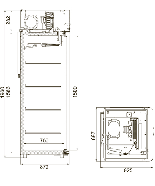 Каталог оборудования Холодильное оборудованиеШкафы холодильныеШкафы холодильные универсальные от -5 до +5 °СШкаф холодильный универсальный Polair CV107-Sm Alu Шкаф холодильный универсальный Polair CV107-Sm Alu Код товара: 062-611 Поделиться: WhatsAppTelegram СравнитьДобавить в КПВ избранное 0 129 370 ₽ В корзину 0 шт Под заказСамовывоз сегодня бесплатно Взять в кредит Купить в лизинг Получить консультацию в WhatsApp Описание Характеристики Отзывы 0 Инструкции 4 Шкаф холодильный универсальный Polair CV107-Sm Alu предназначен для демонстрации и надежного хранения продуктов на предприятиях общественного питания и торговли. Цельнозаливной корпус выполнен из стали с полимерным покрытием и оснащен алюминиевыми профилями, что обеспечивает высокую прочность конструкции и долговечность, а также подчеркивает современный премиальный дизайн. Шкаф работает при температуре окружающей среды до 40 °С и влажности воздуха до 80%. Особенности модели: Контрольная панель с быстрым доступом к настройкам, удобным возвратом в предыдущее меню и возможностью полного отключения без отдельной кнопки. Жидкокристаллический дисплей для наглядного отображения параметров. Клапан Шредера для обслуживания холодильной системы. Компенсационный клапан с ПЭНом обогрева, ПЭНы обогрева трубки слива конденсата и дверного проема — предотвращают образование льда и обеспечивают надежную работу. Распашной тип двери с возможностью изменения стороны открывания, что делает установку более гибкой. Полностью интегрированные ручки, удобные и стильные. Эластичные уплотнители с магнитными вставками для максимальной герметизации. Внутренняя подсветка вынесена на нижнюю часть фронтальной панели. Микропереключатель для автоматического отключения вентилятора и включения подсветки при открытии дверей. Регулируемые по высоте ножки для устойчивости на любом полу. Педаль для удобного открывания без рук. Замок для защиты содержимого. Высокая допустимая нагрузка на полку — до 40 кг. Размер полки: GN 2/1 (530×650 мм). Толщина стенки корпуса — 43 мм, что обеспечивает отличную теплоизоляцию. Polair CV107-Sm Alu — это функциональный и надежный холодильный шкаф с современным дизайном, который обеспечивает максимальную сохранность и удобный доступ к продуктам. Отлично подходит для ресторанов, кафе и магазинов, где важны надежность, стиль и энергоэффективность.Изображение товара, представленного на фото, может отличаться от его фактического вида. Показать все Габаритные размеры697×925×1960 ммДиапазон рабочей температурыот -5 до +5 °CДлина697 ммГлубина925 ммВысота1960 ммОбъём700 лРазмер полки530×650 ммКоличество полок4 штКоличество дверей1 штТип оттайкиАвтоматическая Тип охлажденияДинамическое Тип управленияЭлектронное Материал корпусаНержавеющая сталь Тип двериМеталлическая ЗамокЕсть Способ открыванияРаспашные ХладагентR290 Холодильный агрегатВстроенный Расположение агрегатаВерхнее Потребление электроэнергии в сутки4,5 кВтПотребляемая мощность0,4 кВтНапряжение220 ВГабариты в упаковке800×1000×2150 ммВес нетто113 кгВес брутто138 кгБрендPolairВсе шкафы холодильные универсальные от -5 до +5 °С Из нержавейки Оставить отзыв Еще никто не оставил отзыв на этот товар Схема POLAIR CV107-Sm.jpgИнструкция на POLAIR CV107-Sm.pdfДекларация о соответствии.pdfСертификат соответствия.pdf Похожие товары Перейти в каталог В наличии 117 720 ₽ Шкаф холодильный универсальный Carbom