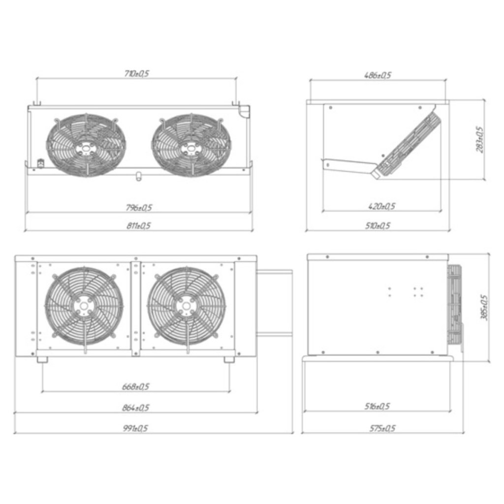 Двойные осевые вентиляторы (2×250 мм) с расходом воздуха 1200 м³/ч — эффективное распределение холодного воздуха.
