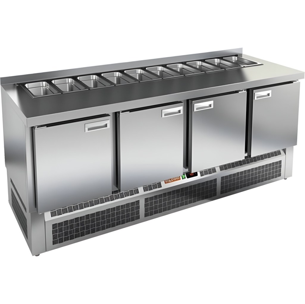 Каталог оборудования Холодильное оборудованиеСтолы охлаждаемыеСтолы холодильные для салатовСтол холодильный для салатов HiCold SLE1-1111SN (1/3) без крышки Стол холодильный для салатов HiCold SLE1-1111SN (1/3) без крышки Код товара: 064-546 Поделиться: WhatsAppTelegram 0 Цена по запросу Получить консультацию в WhatsApp Описание Характеристики Отзывы 0 Инструкции 2 Стол холодильный для салатов HiCold SLE1-1111SN (1/3) без крышки предназначен для предприятий общественного питания и торговли. Он позволяет хранить и обрабатывать ингредиенты для пиццы, салатов и других блюд, а также охлаждать и кратковременно хранить скоропортящиеся продукты и напитки. Модель совмещает рабочую поверхность и охлаждаемый объем, что обеспечивает удобство работы повара: все необходимые компоненты всегда под рукой. Корпус и столешница выполнены из нержавеющей стали, что гарантирует долговечность и простоту ухода. Особенности: Динамическая система охлаждения — равномерное распределение температуры по всему объему. Автоматическая оттайка — упрощает уход за оборудованием. Электронная панель управления — удобная настройка температуры и режимов работы. 4 вместительные внутренние полки формата GN 1/1 — оптимальное хранение ингредиентов. Автоматические доводчики дверей с фиксатором открытого положения — комфорт и безопасность работы. Легкозаменяемые магнитные уплотнители — простота обслуживания. Открытая агрегатная часть — облегчает доступ для обслуживания. Регулируемые по высоте ножки — адаптация к рабочей поверхности. Размер полки: 430×325 мм (GN 1/1) Максимальная глубина гастроемкостей: 100 мм Столешница с бортом, без крышки: толщина столешницы и теплоизоляции — 50 мм, высота борта — 50 мм HiCold SLE1-1111SN (1/3) без крышки — надежный и удобный стол для профессиональной кухни. Он обеспечивает эффективное охлаждение и хранение ингредиентов, а комбинированная рабочая поверхность с холодильным объемом упрощает работу повара, делая процесс приготовления быстрее и удобнее.Изображение товара, представленного на фото, может отличаться от его фактического вида. Показать все Габаритные размеры1970×700×800 ммДиапазон рабочей температурыот +2 до +10 °CРасположение агрегатаНижнее Материал столешницыНержавеющая Тип столаС дверьми Тип двериГлухая Объём430 лКоличество дверей4 штТип гастроемкостейGN 1/3 Размер полки430×325 ммНапряжение220 ВМощность0,46 кВтТип охлажденияДинамический Тип оттайкиАвтоматическая СтолешницаС бортом Вес нетто131 кгВес брутто185 кгБрендHicold Оставить отзыв Еще никто не оставил отзыв на этот товар Паспорт на HICOLD SLE1-1111SN (1/3).pdfДекларация о соответствии.pdf Ранее просмотрено Под заказ 174 420 ₽ Витрина холодильная Carboma GC111 SV 2,5-1 (1008 Темный дуб) (без боковин) Под заказ 106 741 ₽ Витрина холодильная настольная Carboma AC59 VM 0,7-1 (слайдер) (фронт стандартный цвет) Под заказ 192 412 ₽ Стол холодильный для салатов HiCold SL1-1111GN (1/3) без крышки Под заказ 197 722 ₽ Стол холодильный для салатов HiCold SL2-1111GN (1/6) О с крышкой