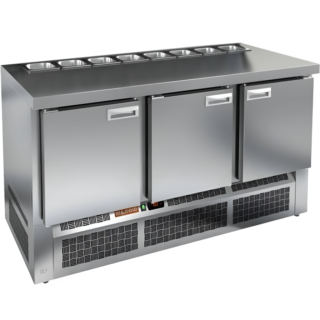 Каталог оборудования Холодильное оборудованиеСтолы охлаждаемыеСтолы холодильные для салатовСтол холодильный для салатов HiCold SLE1-111GN (1/3) без крышки Стол холодильный для салатов HiCold SLE1-111GN (1/3) без крышки Код товара: 064-540 Поделиться: WhatsAppTelegram СравнитьДобавить в КПВ избранное 0 143 362 ₽ В корзину 0 шт Под заказСамовывоз сегодня бесплатно Взять в кредит Купить в лизинг Получить консультацию в WhatsApp Описание Характеристики Отзывы 0 Инструкции 2 Стол холодильный для салатов HiCold SLE1-111SN (1/3) без крышки предназначен для предприятий общественного питания и торговли. Он позволяет хранить и обрабатывать ингредиенты для пиццы, салатов и других блюд, а также охлаждать и кратковременно хранить скоропортящиеся продукты и напитки. Модель совмещает рабочую поверхность и охлаждаемый объем, что обеспечивает удобство работы повара: все необходимые компоненты всегда под рукой. Корпус и столешница выполнены из нержавеющей стали, что гарантирует долговечность и простоту ухода. Особенности: Динамическая система охлаждения — равномерное распределение температуры по всему объему. Автоматическая оттайка — упрощает уход за оборудованием. Электронная панель управления — удобная настройка температуры и режимов работы. 3 вместительные внутренние полки формата GN 1/1 — оптимальное хранение ингредиентов. Автоматические доводчики дверей с фиксатором открытого положения — комфорт и безопасность работы. Легкозаменяемые магнитные уплотнители — простота обслуживания. Открытая агрегатная часть — облегчает доступ для обслуживания. Регулируемые по высоте ножки — адаптация к рабочей поверхности. Размер полки: 430×325 мм (GN 1/1) Максимальная глубина гастроемкостей: 100 мм Столешница с бортом, без крышки: толщина столешницы и теплоизоляции — 50 мм, высота борта — 50 мм HiCold SLE1-111SN (1/3) без крышки — надежный и удобный стол для профессиональной кухни. Он обеспечивает эффективное охлаждение и хранение ингредиентов, а комбинированная рабочая поверхность с холодильным объемом упрощает работу повара, делая процесс приготовления быстрее и удобнее.Изображение товара, представленного на фото, может отличаться от его фактического вида. Показать все Габаритные размеры1485×700×800 ммДиапазон рабочей температурыот +2 до +10 °CРасположение агрегатаНижнее Материал столешницыНержавеющая Тип столаС дверьми Тип двериГлухая Объём375 лКоличество дверей3 штТип гастроемкостейGN 1/3 Размер полки530×325 ммНапряжение220 ВМощность0,46 кВтТип охлажденияДинамический Тип оттайкиАвтоматическая СтолешницаС бортом Вес нетто135 кгВес брутто195 кгБрендHicold Оставить отзыв Еще никто не оставил отзыв на этот товар Паспорт на HICOLD SLE1-111SN.pdfДекларация о соответствии.pdf Ранее просмотрено Под заказ 125 182 ₽ Стол холодильный для салатов HiCold SLE3-11GN О с крышкой Под заказ 121 492 ₽ Стол холодильный для салатов HiCold SLE2-11GN (1/6) без крышки Под заказ 239 032 ₽ Стол холодильный для салатов HiCold SLE2-222GN (1/6) с крышкой Под заказ 234 262 ₽ Стол холодильный для салатов HiCold SL2-33SN (1/6) с крышкой Под заказ 208 792 ₽ Стол холодильный для салатов HiCold SLE1-122GN (1/3) с крышкой Под заказ 118 162 ₽ Стол холодильный для салатов HiCold SLE3-11GN О без крышки Под заказ 164 062 ₽ Стол холодильный для салатов HiCold SL2-111GN (1/6) без крышки