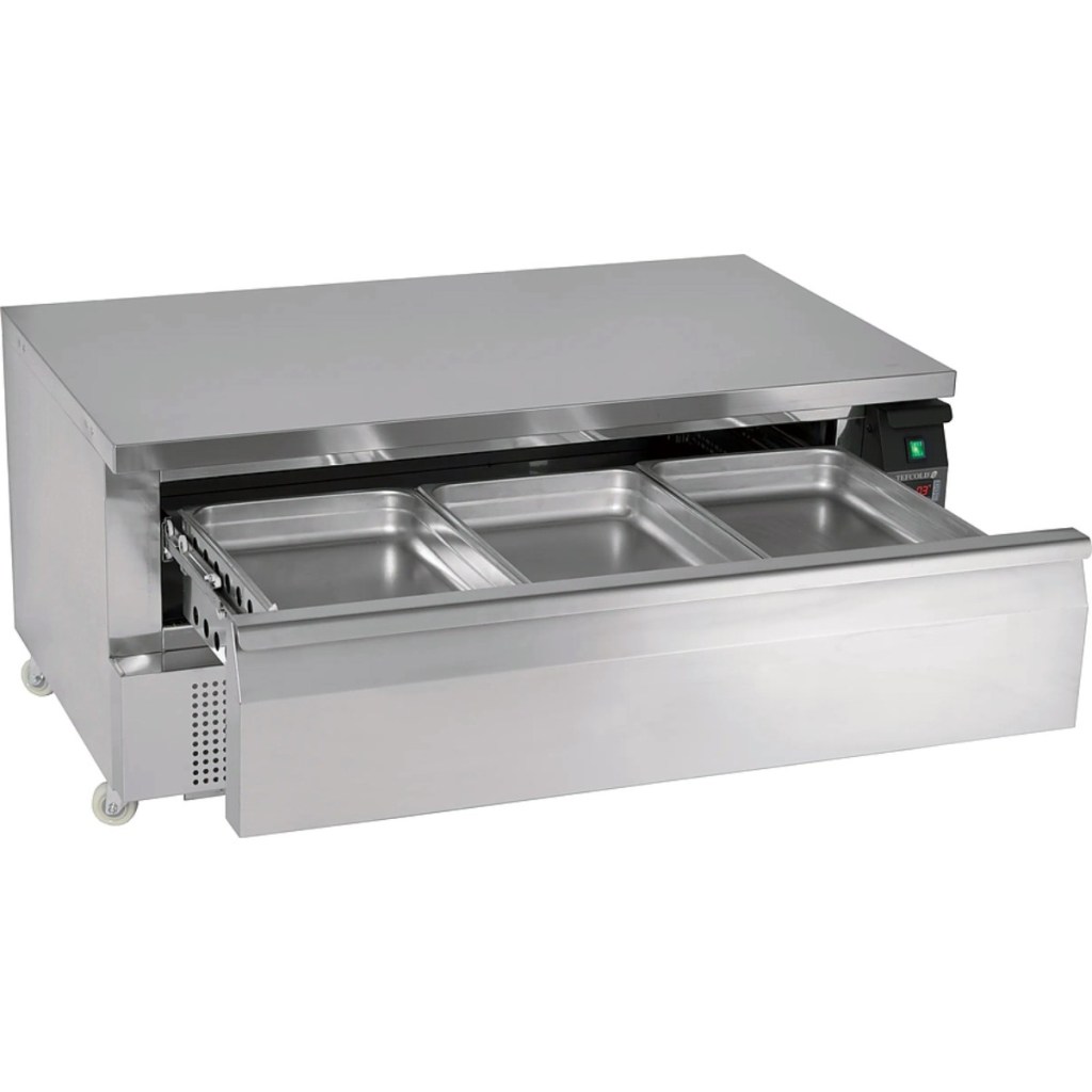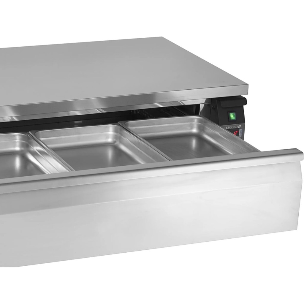 Каталог оборудования Холодильное оборудованиеСтолы охлаждаемыеСтолы холодильные комбинированныеСтол холодильно-морозильный TEFCOLD UD1-3 Стол холодильно-морозильный TEFCOLD UD1-3 Код товара: 010-375 Поделиться: WhatsAppTelegram СравнитьДобавить в КПВ избранное 0 158 753 ₽ В корзину 0 шт В наличииСамовывоз сегодня бесплатно Взять в кредит Купить в лизинг Получить консультацию в WhatsApp Описание Характеристики Отзывы 0 Инструкции 2 Стол холодильно-морозильный TEFCOLD UD1-3 предназначен для обработки ингредиентов и хранения охлаждённых и замороженных продуктов на предприятиях общественного питания и торговли. Модель оснащена расположенным снизу агрегатным отсеком, столешницей, гастрономированным выдвижным ящиком и кнопочной панелью управления с цифровым дисплеем. Корпус и внутренняя отделка выполнены из высококачественной нержавеющей стали SS304, обеспечивая долговечность и лёгкость в уходе. Особенности модели: Динамическое охлаждение с равномерной циркуляцией воздуха Автоматическая оттайка для удобства эксплуатации Электронный контроллер Dixell с цифровой температурной индикацией Возможность переключения между холодильным (1–4 °C) и морозильным (-21–-18 °C) режимами Самодиагностика с отображением неисправностей 4 поворотных колеса (2 с фиксацией) для лёгкой транспортировки Экологичный энергоэффективный хладагент R290, масса 0,07 кг Прочные износостойкие материалы и качественные комплектующие Класс энергоэффективности: E Климатический класс: 5 Формат гастроёмкостей: GN3/1, вместимость 3 шт. Общий объём: 116 л, полезный объём: 77 л Среднее энергопотребление: 6,05 кВт/сутки, 2208 кВт⋅ч/год Максимальная нагрузка: столешница 240 кг, ящик 60 кг Максимальная температура окружающей среды: 40 °C, относительная влажность до 40% Внутренние размеры: 1000×565×205 мм Уровень шума: 54 дБ TEFCOLD UD1-3 — универсальный и надёжный комбинированный стол для профессиональных кухонь. Он обеспечивает эффективное охлаждение и заморозку продуктов, удобство эксплуатации и долговечность благодаря прочным материалам и качественной сборке. Эргономичный дизайн и высокая энергоэффективность делают его оптимальным решением для предприятий общественного питания и торговли.Изображение товара, представленного на фото, может отличаться от его фактического вида. Показать все Габаритные размеры1230×700×600 ммТемпература морозильного отделенияот -21 до -18 °CТемпература холодильного отделенияот +1 до +4 °CРасположение агрегатаНижнее Материал столешницыНержавеющая Тип столаС ящиками Полезный объем77 лКоличество ящиков1 штТип гастроемкостейGN3/1 Климатический класс5 Уровень шума42 дБНапряжение230 ВМощность0,27 кВтРасход электроэнергии в сутки2,39 кВт/сутТип охлажденияДинамический Тип оттайкиАвтоматическая ХладагентR290 Габариты в упаковке1310×770×740 ммВес нетто90 кгВес брутто105 кгБрендTefcold Оставить отзыв Еще никто не оставил отзыв на этот товар Инструкция на TEFCOLD UD1-3.pdfСпецификация на TEFCOLD UD1-3.pdf Похожие товары Перейти в каталог Под заказ 111 051 ₽ Стол холодильный среднетемпературный HiCold GNG 1 BR2 HT Под заказ 79 911 ₽ Стол холодильный среднетемпературный HiCold GN 1/TN W Под заказ 79 461 ₽ Стол холодильный среднетемпературный HiCold SN 1/TN W Под заказ 104 947 ₽ Стол холодильный среднетемпературный Abat СХС-70 с бортом (дверь) С этим товаром покупают Под заказ 99 931 ₽ Шкаф холодильный Abat ШХс-0,5-02 Ранее просмотрено В наличии 169 675 ₽ Стол холодильно-морози