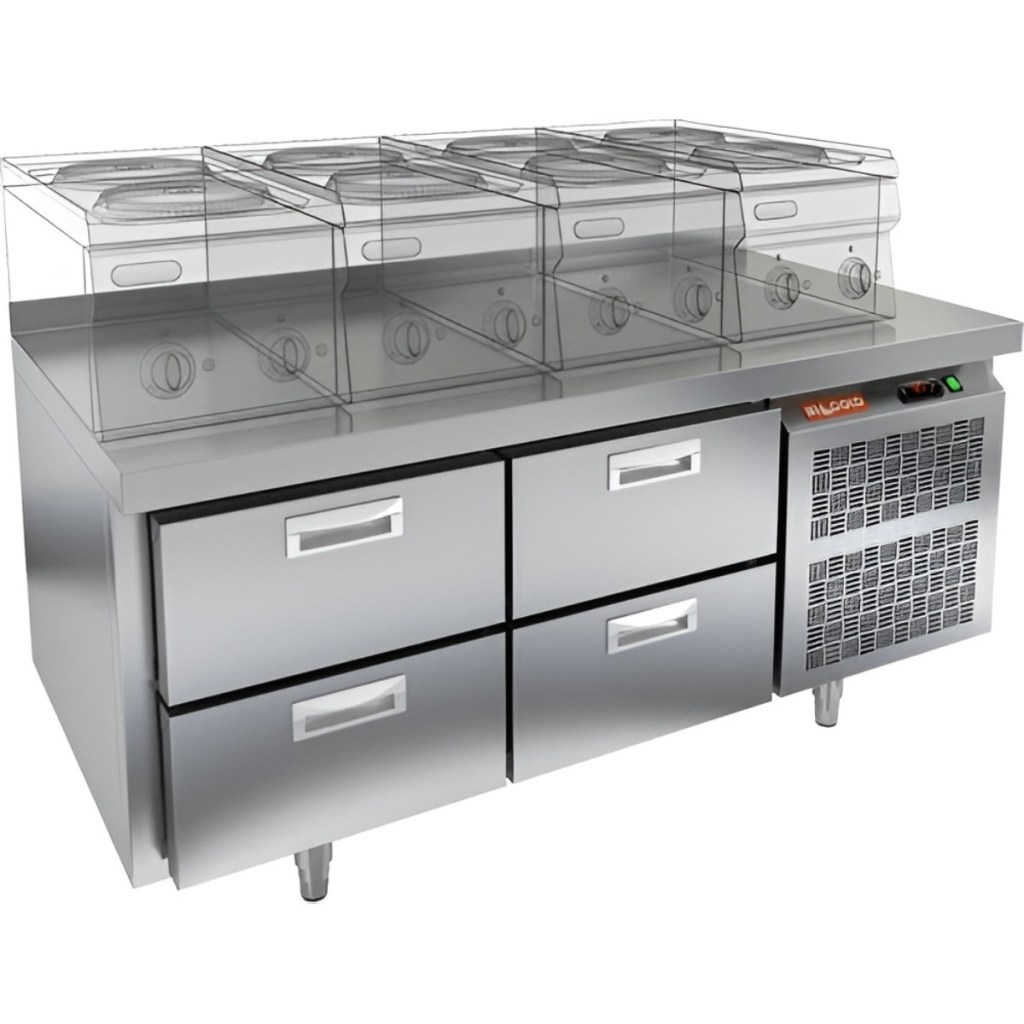 Каталог оборудования Холодильное оборудованиеСтолы охлаждаемыеСтолы холодильные под тепловое оборудованиеСтол охлаждаемый HiCold GN 22/TN LT под тепловое оборудование Стол охлаждаемый HiCold GN 22/TN LT под тепловое оборудование Код товара: 065-419 Поделиться: WhatsAppTelegram СравнитьДобавить в КПВ избранное 0 172 611 ₽ В корзину 0 шт В наличии на 1 складеДоступно для заказа 2 шт.Наличие на складахМоскваМО, Бритово, Раменский гор. округ, Складской комплекс ССТ, корп. 2, секция 2В наличии 2 шт.Самовывоз сегодня бесплатно Расчет стоимости доставкиОткудаМоскваКудаМоскваСанкт-ПетербургАстраханьБарнаулБелгородБрянскВладивостокВолгоградВоронежЕкатеринбургИвановоИжевскИркутскКазаньКалининградКемеровоКировКраснодарКрасноярскКурскЛипецкМагнитогорскМахачкалаНабережные ЧелныНижний НовгородНижний ТагилНовокузнецкНовосибирскОмскОренбургПензаПермьПятигорскРостов-на-ДонуРязаньСамараСаратовСимферопольСтавропольТверьТольяттиТомскТулаТюменьУлан-УдэУльяновскУфаХабаровскЧебоксарыЧелябинскЯрославльРассчитатьРасчет стоимости доставки указан приблизительный, более точный расчет Вам может осуществить сотрудник транспортной компании. Взять в кредит Купить в лизинг Получить консультацию в WhatsApp Описание Характеристики Отзывы 0 Инструкции 2 Стол охлаждаемый HiCold GN 22/TN LT под тепловое оборудование предназначен для обработки ингредиентов и временного хранения скоропортящихся продуктов и напитков на предприятиях общественного питания и торговли. Устройство совмещает функции рабочей поверхности и холодильной камеры. Столешница рассчитана на установку теплового оборудования: под рабочей поверхностью встроен ДСП-лист, который укрепляет конструкцию и препятствует проникновению тепла внутрь. Такое решение обеспечивает дополнительную жесткость, позволяет рационально использовать рабочее пространство и повышает эффективность работы на кухне. Особенности: 4 выдвижных ящика — быстрое и удобное хранение ингредиентов. Автоматические доводчики дверей с фиксатором открытого положения повышают эргономику и способствуют сохранению холода. Легкозаменяемые магнитные уплотнители обеспечивают плотное прилегание дверей и лёгкость в обслуживании. Открытая агрегатная часть упрощает доступ к компрессору при техническом обслуживании. Регулируемые по высоте ножки позволяют установить стол на неровной поверхности. Толщина столешницы — 50 мм обеспечивает прочность рабочей поверхности. Высота борта — 50 мм предотвращает падение продуктов и инвентаря. Толщина теплоизоляции — 50 мм способствует энергоэффективности и стабильному температурному режиму. HiCold GN 22/TN LT — это надёжный и практичный холодильный стол с выдвижными ящиками, идеально подходящий для профессиональных кухонь. Его конструкция создана для обеспечения удобства, гигиеничности и эффективности в условиях интенсивной эксплуатации.Изображение товара, представленного на фото, может отличаться от его фактического вида. Показать все Габаритные размеры1390×700×675 ммДиапазон рабочей температурыот -2 до +10 °CМатериал столешницыНержавеющая Расположение агрегатаБоковое Объём255 лТип столаС ящиками Количество ящиков4 штНапряжение220 ВМощность0,22 кВтТип охлажденияДинамический Тип оттайкиАвтоматическая СтолешницаС бортом Габариты в упаковке1550×850×850 ммВес нетто98 кгВес брутто109 кгБрендHicold Ост