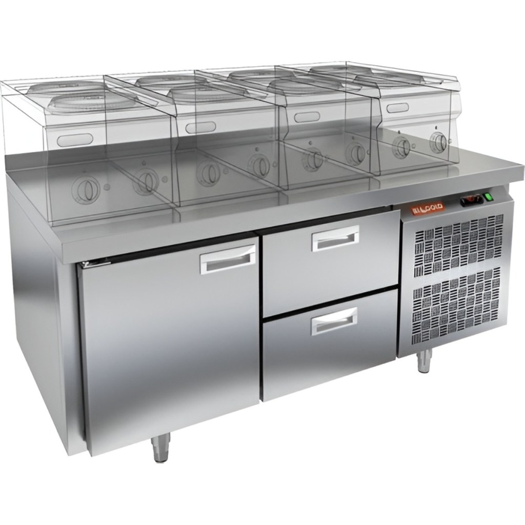 Каталог оборудования Холодильное оборудованиеСтолы охлаждаемыеСтолы холодильные под тепловое оборудованиеСтол охлаждаемый HiCold SN 12/TN LT под тепловое оборудование Стол охлаждаемый HiCold SN 12/TN LT под тепловое оборудование Код товара: 065-536 Поделиться: WhatsAppTelegram СравнитьДобавить в КПВ избранное 0 141 561 ₽ В корзину 0 шт Под заказСамовывоз сегодня бесплатно Взять в кредит Купить в лизинг Получить консультацию в WhatsApp Описание Характеристики Отзывы 0 Инструкции 2 Стол охлаждаемый HiCold SN 12/TN LT под тепловое оборудование предназначен для обработки ингредиентов и временного хранения скоропортящихся продуктов и напитков на предприятиях общественного питания и торговли. Устройство совмещает функции рабочей поверхности и холодильной камеры. Столешница рассчитана на установку теплового оборудования: под рабочей поверхностью встроен ДСП-лист, который укрепляет конструкцию и препятствует проникновению тепла внутрь. Такое решение обеспечивает дополнительную жесткость, позволяет рационально использовать рабочее пространство и повышает эффективность работы на кухне. Особенности: 1 распашная дверь — обеспечивает удобный доступ к внутреннему пространству. 2 выдвижных ящика — обеспечивают удобный доступ к продуктам и инвентарю Автоматические доводчики дверей с фиксатором открытого положения повышают эргономику и способствуют сохранению холода. Легкозаменяемые магнитные уплотнители обеспечивают плотное прилегание дверей и лёгкость в обслуживании. Открытая агрегатная часть упрощает доступ к компрессору при техническом обслуживании. Регулируемые по высоте ножки позволяют установить стол на неровной поверхности. Толщина столешницы — 50 мм обеспечивает прочность рабочей поверхности. Высота борта — 50 мм предотвращает падение продуктов и инвентаря. Толщина теплоизоляции — 50 мм способствует энергоэффективности и стабильному температурному режиму. HiCold SN 12/TN LT — это надёжное и удобное оборудование, сочетающее охлаждение и рабочее пространство. Благодаря продуманной конструкции и совместимости с гастроемкостями GN 1/1, стол станет практичным решением для кухни любого профессионального уровня.Изображение товара, представленного на фото, может отличаться от его фактического вида. Показать все Габаритные размеры1390×600×675 ммДиапазон рабочей температурыот -2 до +10 °CМатериал столешницыНержавеющая Расположение агрегатаБоковое Объём220 лТип столаС дверьми и ящиками Тип двериГлухая Количество дверей1 штКоличество ящиков2 штРазмер полки530×325 ммНапряжение220 ВМощность0,22 кВтТип охлажденияДинамический Тип оттайкиАвтоматическая СтолешницаС бортом Габариты в упаковке1550×750×850 ммВес нетто125 кгВес брутто147 кгБрендHicold Оставить отзыв Еще никто не оставил отзыв на этот товар Паспорт на HICOLD SN 12TN LT.pdfДекларация о соответствии.pdf Похожие товары Перейти в каталог В наличии 77 661 ₽ Стол холодильный среднетемпературный HiCold GN 11/TN W Под заказ 128 184 ₽ Стол холодильный среднетемпературный Abat СХС-70-01 с бортом (дверь, дверь) С этим товаром покупают В наличии 195 647 ₽ Шкаф морозильный Полюс Carboma F1400 В наличии 198 281 ₽ Плита индукционная Аbat КИП-47Н Ранее просмотрено В наличии 198 473 ₽ Шкаф морозильный со стеклом TEFCOLD UF400SG нержавеющий Под заказ 135 441 ₽ Стол морозильный HiCold GN 2/BT LT под тепловое оборудование Под заказ 107 361 ₽ Стол холодильный для салатов HiCold SLE3-1GN низкое стекло По