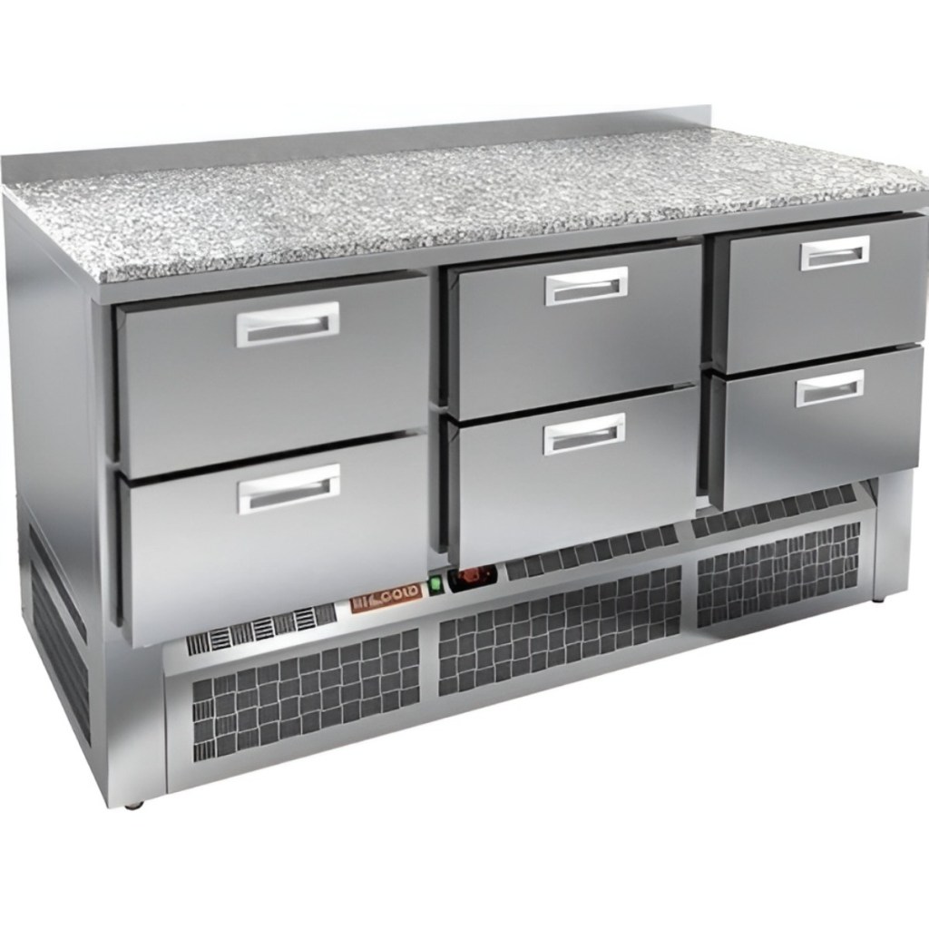 Каталог оборудования Холодильное оборудованиеСтолы охлаждаемыеСтолы холодильные среднетемпературныеСтол холодильный среднетемпературный HiCold GNE 222/TN камень Стол холодильный среднетемпературный HiCold GNE 222/TN камень Код товара: 065-387 Поделиться: WhatsAppTelegram СравнитьДобавить в КПВ избранное 0 260 578 ₽ В корзину 0 шт Под заказСамовывоз сегодня бесплатно Взять в кредит Купить в лизинг Получить консультацию в WhatsApp Описание Характеристики Отзывы 0 Инструкции 2 Стол холодильный среднетемпературный HiCold GNE 222/TN камень предназначен для предприятий общественного питания и торговли. Он используется для обработки ингредиентов при приготовлении блюд, а также для кратковременного хранения скоропортящихся продуктов и напитков. Модель оснащена удобной электронной панелью управления, которая обеспечивает простоту и точность настройки температуры. Корпус выполнен из нержавеющей стали, а столешница — из прочного гранита, что гарантирует долговечность и устойчивость к механическим повреждениям. Особенности: 6 выдвижных секций позволяют рационально использовать внутреннее пространство. Автоматические доводчики дверей с фиксатором открытого положения, обеспечивающие комфорт и безопасность в работе. Легкозаменяемые магнитные уплотнители для эффективного сохранения холода и простоты обслуживания. Открытая агрегатная часть для облегчённого доступа при техническом обслуживании. Регулируемые по высоте ножки позволяют адаптировать оборудование к любому рабочему месту. Толщина столешницы — 50 мм, что гарантирует прочность и удобство. Высота борта — 50 мм предотвращает скатывание продуктов. Толщина теплоизоляции — 50 мм обеспечивает стабильное поддержание температуры. Холодильный стол HiCold GNE 222/TN камень сочетает в себе высокое качество материалов, удобство эксплуатации и функциональность, что делает его надёжным помощником на профессиональной кухне.Изображение товара, представленного на фото, может отличаться от его фактического вида. Показать все Габаритные размеры1485×700×850 ммДиапазон рабочей температурыот -2 до +10 °CРасположение агрегатаНижнее Материал столешницыГранитная Тип столаС ящиками Объём375 лКоличество ящиков6 штНапряжение220 ВМощность0,22 кВтТип охлажденияДинамический Тип оттайкиАвтоматическая СтолешницаС бортом Габариты в упаковке1700×850×1080 ммВес нетто162 кгВес брутто207 кгБрендHicoldВсе холодильные столы HicoldВсе нержавеющие холодильные столы Все холодильные столы с бортом Оставить отзыв Еще никто не оставил отзыв на этот товар Паспорт на HICOLD GNE 222TN.pdfДекларация о соответствии.pdf Ранее просмотрено Под заказ 164 341 ₽ Стол холодильный среднетемпературный HiCold GNE 12/TN камень В наличии 199 500 ₽ Камера холодильная АСК-холод КХ-10,14 (2260х2260х2460) Под заказ 149 931 ₽ Стол морозильный HiCold SNE 12/BT без столешницы Под заказ 244 342 ₽ Стол холодильно-морозильный Hicold GN 111/TN-1/BT BR2