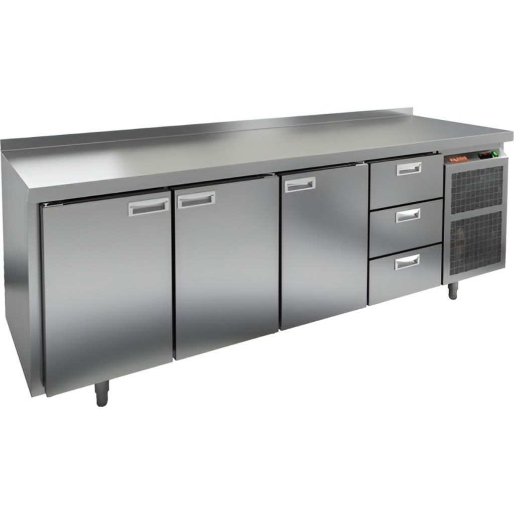 Каталог оборудования Холодильное оборудованиеСтолы охлаждаемыеСтолы морозильные низкотемпературныеСтол морозильный HiCold BN 1113/BT Стол морозильный HiCold BN 1113/BT Код товара: 062-073 Поделиться: WhatsAppTelegram СравнитьДобавить в КПВ избранное 0 251 451 ₽ В корзину 0 шт В наличииСамовывоз сегодня бесплатно Взять в кредит Купить в лизинг Получить консультацию в WhatsApp Описание Характеристики Отзывы 0 Инструкции 2 Стол морозильный HiCold BN 1113/BT предназначен для заморозки и хранения скоропортящихся продуктов и напитков на предприятиях общественного питания и торговли. Он сочетает в себе удобство использования и высокую эффективность. Управление осуществляется с помощью простой и понятной электронной панели. Конструкция корпуса и столешницы выполнена из прочной нержавеющей стали, что обеспечивает долговечность и гигиеничность оборудования. В комплект входят 3 полки, что позволяет удобно организовать внутреннее пространство для хранения различных продуктов. Особенности: Автоматические доводчики дверей с фиксацией в открытом положении — для комфортной загрузки и выгрузки продуктов; Легкозаменяемые магнитные уплотнители — обеспечивают плотное закрытие дверей и снижают теплопотери; Регулируемые по высоте ножки — позволяют устанавливать стол на неровных поверхностях; Толщина столешницы — 50 мм; Толщина теплоизоляции — 50 мм — для сохранения стабильной температуры; Высота борта — 50 мм — предотвращает затекание жидкости и обеспечивает чистоту на рабочем месте. Морозильный стол HiCold BN 1113/BT — это надежное и практичное оборудование, обеспечивающее качественное хранение продуктов и удобство в ежедневной работе персонала кухни.Изображение товара, представленного на фото, может отличаться от его фактического вида. Показать все Габаритные размеры2280×500×850 ммДиапазон рабочей температурыот -18 до -10 °CРасположение агрегатаБоковое Материал столешницыНержавеющая Тип столаС дверьми и ящиками Тип двериГлухая Объём460 лКоличество дверей3 штКоличество полок3 штКоличество ящиков3 штРазмер полки330×325 ммНапряжение220 ВМощность0,75 кВтТип охлажденияДинамический Тип оттайкиАвтоматическая СтолешницаС бортом Вес нетто135 кгВес брутто155 кгБрендHicoldВсе морозильные столы HicoldВсе морозильные столы с бортом Оставить отзыв Еще никто не оставил отзыв на этот товар Паспорт на HICOLD BN 1113/BT.pdfДекларация о соответствии.pdf Ранее просмотрено Под заказ 247 492 ₽ Стол морозильный HiCold GN 11111 BR2 BT В наличии Цена по запросу Стол холодильный среднетемпературный TEFCOLD CK7340 В наличии Цена по запросу Льдогенератор Cooleq ZB-12 белый (пальчики)