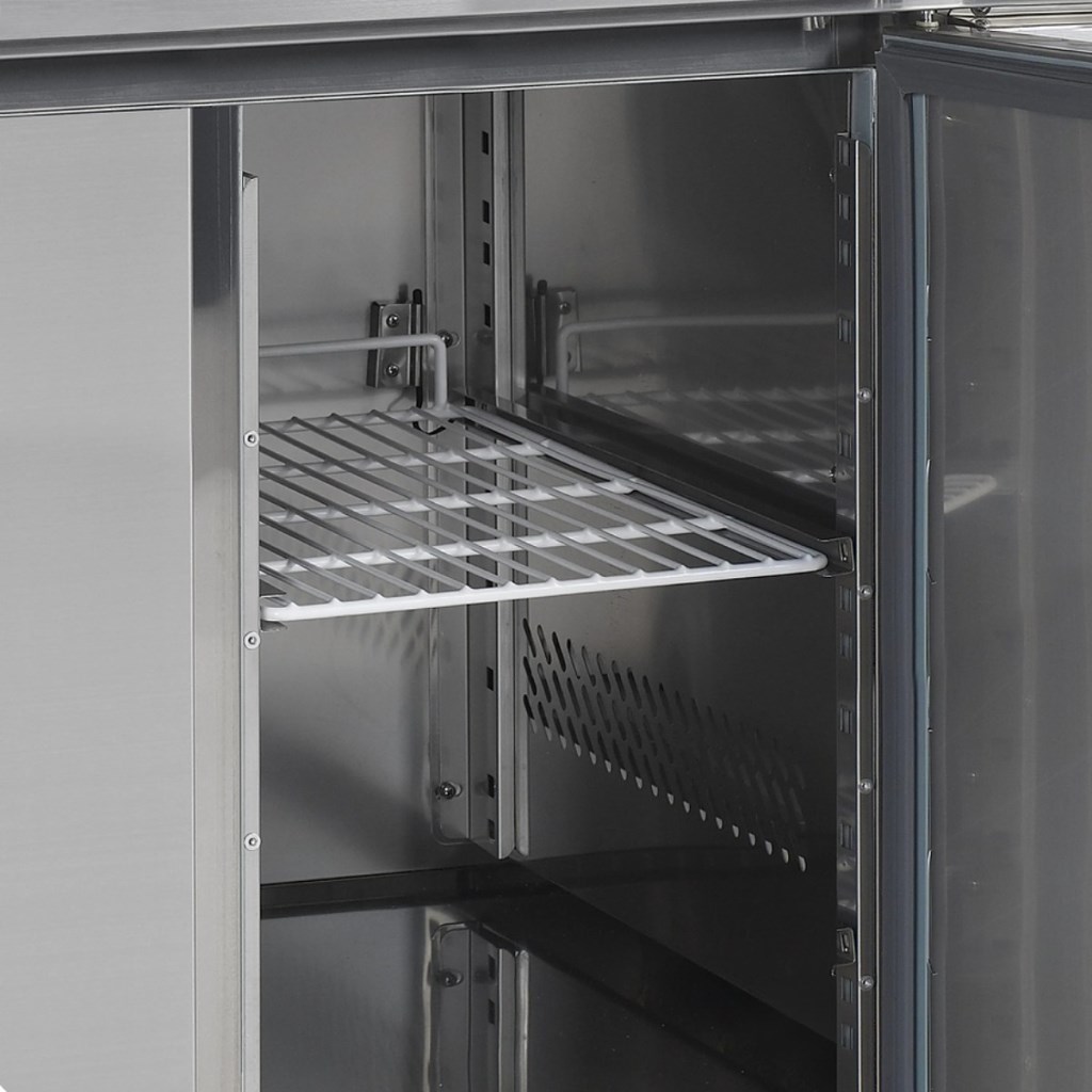 Каталог оборудования Холодильное оборудованиеСтолы охлаждаемыеСтолы морозильные низкотемпературныеСтол морозильный TEFCOLD CF7310 Стол морозильный TEFCOLD CF7310 Код товара: 010-257 Поделиться: WhatsAppTelegram СравнитьДобавить в КПВ избранное 0 218 857 ₽ В корзину 0 шт В наличииСамовывоз сегодня бесплатно Взять в кредит Купить в лизинг Получить консультацию в WhatsApp Описание Характеристики Отзывы 0 Стол морозильный TEFCOLD CF7310 — профессиональное оборудование для раскатки теста, обработки, заморозки и долговременного хранения продуктов, полуфабрикатов, напитков и мороженого на предприятиях общественного питания и торговли. Корпус и внутренняя отделка выполнены из нержавеющей стали AISI 304, что обеспечивает долговечность, гигиеничность и лёгкость ухода. Особенности модели: Динамическое охлаждение — равномерное распределение холода по всему объёму Автоматическое размораживание — поддержание стабильной работы без образования наледи Электронный термостат и градусник — точное управление температурой Хладагент R404a, подзарядка — 0,09 кг Съёмная столешница с бортом — удобство работы и уборки Самозакрывающиеся двери 3 полки GN1/1 (530 × 325 мм) — эффективная организация внутреннего пространства Регулируемые по высоте ножки — устойчивость на любой поверхности Климатический класс 4 — работа при температуре до +30 °C Полезный объём: 402 л Мощность: 0,7 кВт Энергопотребление: 10,15 кВт/сутки Внутренние размеры: 1337 × 530 × 589 мм Уровень шума: 42 дБ TEFCOLD CF7310 — надёжный и функциональный морозильный стол для профессиональных кухонь. Он сочетает рабочую поверхность для раскатки теста с вместительной морозильной камерой, обеспечивая удобство работы, долговременное хранение продуктов и стабильный температурный режим.Изображение товара, представленного на фото, может отличаться от его фактического вида. Показать все Габаритные размеры1795×700×980 ммДиапазон рабочей температурыот -20 до -10 °CРасположение агрегатаБоковое Материал столешницыНержавеющая Тип столаС дверьми Тип двериГлухая Общий объем417 лПолезный объем402 лКоличество дверей3 штРазмер полки530×325 ммНапряжение230 ВРасход электроэнергии в сутки6,95 кВт/сутТип охлажденияДинамический Тип оттайкиАвтоматическая Климатический класс4 ХладагентR404a СтолешницаС бортом Уровень шума42 дБГабариты в упаковке1830×750×1010 ммВес нетто152 кгВес брутто162 кгБрендTefcold Оставить отзыв Еще никто не оставил отзыв на этот товар Похожие товары Перейти в каталог Под заказ 137 227 ₽ Стол морозильный HURAKAN HKN-GN3BT Под заказ 166 404 ₽ Стол морозильный Abat СХН-70-02 без борта (дверь, дверь, дверь) С этим товаром покупают В наличии 201 690 ₽ Шкаф морозильный Полюс Carboma F1400 Ранее просмотрено Цена по запросу Стол холодильный среднетемпературный TEFCOLD CK7210G