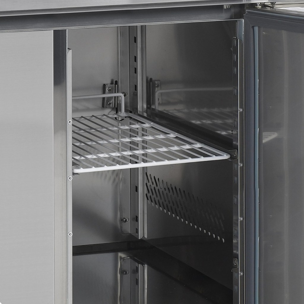 Каталог оборудования Холодильное оборудованиеСтолы охлаждаемыеСтолы морозильные низкотемпературныеСтол морозильный TEFCOLD CF7310 Стол морозильный TEFCOLD CF7310 Код товара: 010-257 Поделиться: WhatsAppTelegram СравнитьДобавить в КПВ избранное 0 218 857 ₽ В корзину 0 шт В наличииСамовывоз сегодня бесплатно Взять в кредит Купить в лизинг Получить консультацию в WhatsApp Описание Характеристики Отзывы 0 Стол морозильный TEFCOLD CF7310 — профессиональное оборудование для раскатки теста, обработки, заморозки и долговременного хранения продуктов, полуфабрикатов, напитков и мороженого на предприятиях общественного питания и торговли. Корпус и внутренняя отделка выполнены из нержавеющей стали AISI 304, что обеспечивает долговечность, гигиеничность и лёгкость ухода. Особенности модели: Динамическое охлаждение — равномерное распределение холода по всему объёму Автоматическое размораживание — поддержание стабильной работы без образования наледи Электронный термостат и градусник — точное управление температурой Хладагент R404a, подзарядка — 0,09 кг Съёмная столешница с бортом — удобство работы и уборки Самозакрывающиеся двери 3 полки GN1/1 (530 × 325 мм) — эффективная организация внутреннего пространства Регулируемые по высоте ножки — устойчивость на любой поверхности Климатический класс 4 — работа при температуре до +30 °C Полезный объём: 402 л Мощность: 0,7 кВт Энергопотребление: 10,15 кВт/сутки Внутренние размеры: 1337 × 530 × 589 мм Уровень шума: 42 дБ TEFCOLD CF7310 — надёжный и функциональный морозильный стол для профессиональных кухонь. Он сочетает рабочую поверхность для раскатки теста с вместительной морозильной камерой, обеспечивая удобство работы, долговременное хранение продуктов и стабильный температурный режим.Изображение товара, представленного на фото, может отличаться от его фактического вида. Показать все Габаритные размеры1795×700×980 ммДиапазон рабочей температурыот -20 до -10 °CРасположение агрегатаБоковое Материал столешницыНержавеющая Тип столаС дверьми Тип двериГлухая Общий объем417 лПолезный объем402 лКоличество дверей3 штРазмер полки530×325 ммНапряжение230 ВРасход электроэнергии в сутки6,95 кВт/сутТип охлажденияДинамический Тип оттайкиАвтоматическая Климатический класс4 ХладагентR404a СтолешницаС бортом Уровень шума42 дБГабариты в упаковке1830×750×1010 ммВес нетто152 кгВес брутто162 кгБрендTefcold Оставить отзыв Еще никто не оставил отзыв на этот товар Похожие товары Перейти в каталог Под заказ 125 817 ₽ Стол морозильный HURAKAN HKN-GN3BT Под заказ 166 404 ₽ Стол морозильный Abat СХН-70-02 без борта (дверь, дверь, дверь) С этим товаром покупают В наличии 201 690 ₽ Шкаф морозильный Полюс Carboma F1400 Ранее просмотрено В наличии 102 017 ₽ Стол морозильный низкотемпературный Polair TB2GN-GC