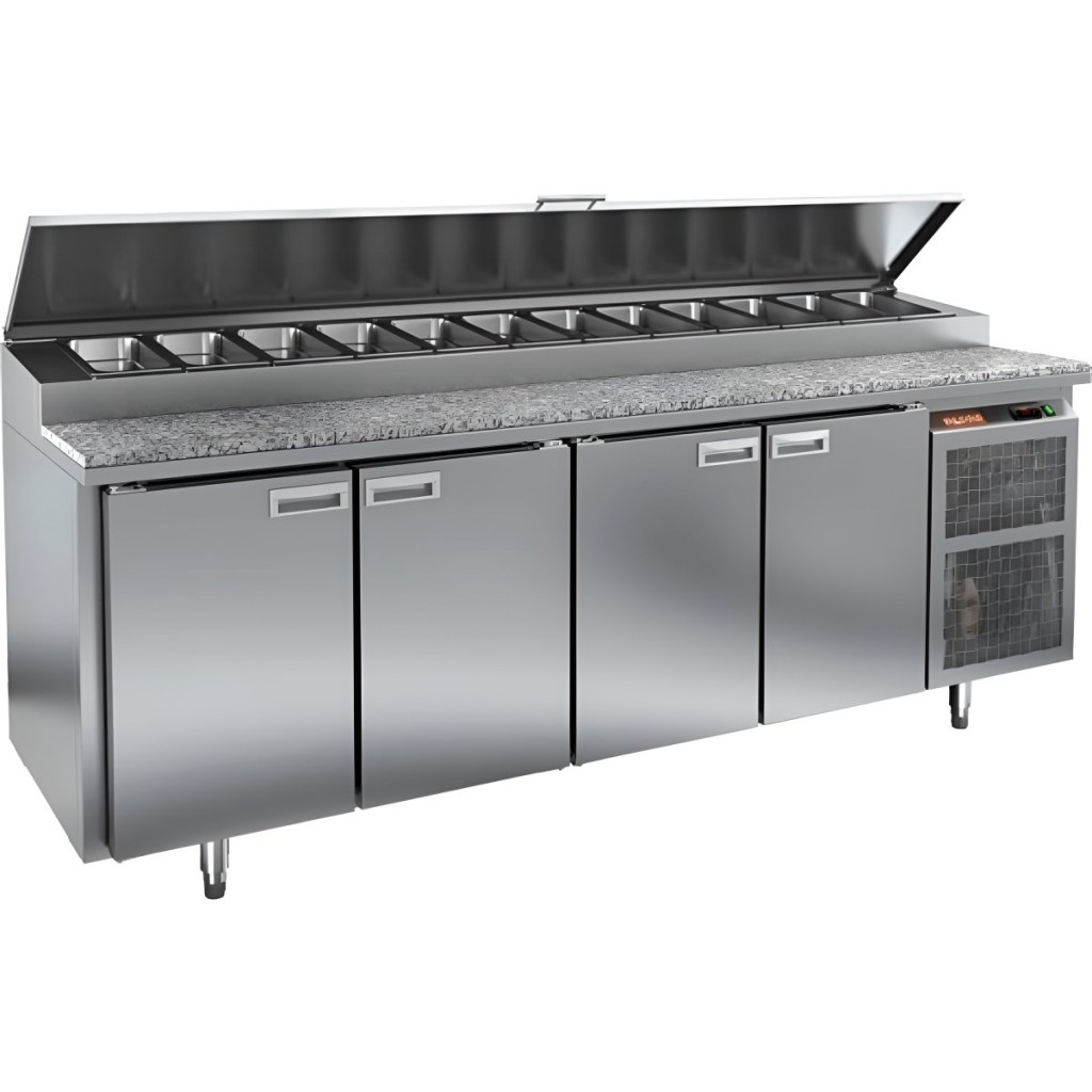 Каталог оборудования Холодильное оборудованиеСтолы охлаждаемыеСтолы холодильные для пиццыСтол холодильный для пиццы HiCold PZ1-1111GN (1/3) камень Стол холодильный для пиццы HiCold PZ1-1111GN (1/3) камень Код товара: 064-684 Поделиться: WhatsAppTelegram СравнитьДобавить в КПВ избранное 0 290 061 ₽ В корзину 0 шт Под заказСамовывоз сегодня бесплатно Взять в кредит Купить в лизинг Получить консультацию в WhatsApp Описание Характеристики Отзывы 0 Инструкции 2 Стол холодильный для пиццы HiCold PZ1-1111GN (1/3) камень предназначен для профессиональных кухонь ресторанов, кафе и предприятий торговли. Он совмещает просторную рабочую поверхность из камня для раскатки теста и подготовки ингредиентов с охлаждаемым объёмом для кратковременного хранения продуктов и напитков. Такой подход экономит место и ускоряет работу повара — всё необходимое всегда под рукой. Основные особенности: Столешница из камня — устойчива к механическим повреждениям, не впитывает запахи и легко очищается Динамическая система охлаждения для равномерного распределения холода Автоматическая оттайка для бесперебойной работы Электронная панель управления для точной регулировки температуры 4 вместительные полки формата GN 1/1 (размер 530×325 мм) Автоматические доводчики дверей с фиксатором открытого положения Легкозаменяемые магнитные уплотнители для поддержания герметичности Открытая агрегатная часть для удобного обслуживания Регулируемые по высоте ножки для установки по уровню Максимальная глубина гастроёмкостей: 100 мм Глубина рабочей поверхности: 324 мм Толщина столешницы и теплоизоляции: 50 мм Вместимость салат-бара: до 12 гастроёмкостей HICOLD PZ1-1111/GN со столешницей из камня — это прочный, гигиеничный и удобный стол для пиццы, сочетающий рабочую поверхность и холодильный блок. Идеален для интенсивной эксплуатации на профессиональной кухне.Изображение товара, представленного на фото, может отличаться от его фактического вида. Показать все Габаритные размеры2280×700×1000 ммДиапазон рабочей температурыот +2 до +10 °CРасположение агрегатаБоковое Материал столешницыГранитная Тип столаС дверьми Тип двериГлухая Объём660 лТип гастроемкостейGN 1/3 Количество дверей4 штРазмер полки530×325 ммНапряжение220 ВМощность0,48 кВтТип охлажденияДинамическое Тип оттайкиАвтоматическая Габариты в упаковке2380×840×1140 ммВес нетто208 кгВес брутто228 кгБрендHicoldВсе холодильные столы для пиццы Hicold Оставить отзыв Еще никто не оставил отзыв на этот товар Паспорт на HICOLD PZ1-1111GN (1/3).pdfДекларация о соответствии.pdf Ранее просмотрено Под заказ 353 962 ₽ Стол холодильный для пиццы HiCold PZ2-223GN (1/6) камень Под заказ 125 302 ₽ Витрина холодильная Carboma GС110 ВХСр-2 (GС110 VV 2,0-1) Под заказ 211 900 ₽ Горка холодильная Ангара ГХ 900 - 1,4 (без боковин) Под заказ 283 311 ₽ Стол холодильный для пиццы HiCold PZE2-1112/GN (1/6) камень