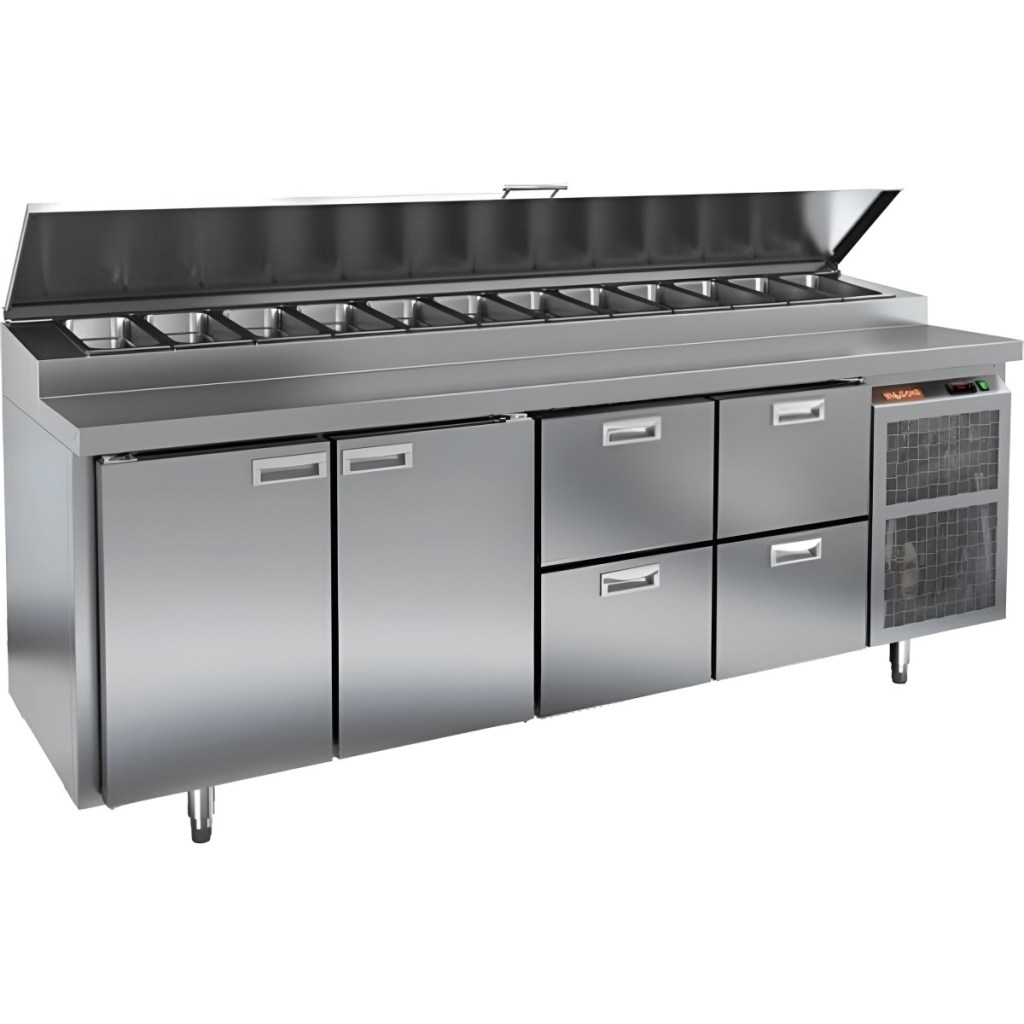 Каталог оборудования Холодильное оборудованиеСтолы охлаждаемыеСтолы холодильные для пиццыСтол холодильный для пиццы HiCold PZ1-1122/GN (1/3H) Стол холодильный для пиццы HiCold PZ1-1122/GN (1/3H) Код товара: 064-694 Поделиться: WhatsAppTelegram СравнитьДобавить в КПВ избранное 0 311 842 ₽ В корзину 0 шт Под заказСамовывоз сегодня бесплатно Взять в кредит Купить в лизинг Получить консультацию в WhatsApp Описание Характеристики Отзывы 0 Стол холодильный для пиццы HiCold PZ1-1122GN (1/3H) — профессиональное оборудование для ресторанов, кафе и предприятий торговли. Он совмещает рабочую поверхность для раскатки теста и подготовки ингредиентов с охлаждаемым блоком для кратковременного хранения продуктов и напитков. Корпус и столешница выполнены из нержавеющей стали, что гарантирует долговечность и лёгкость ухода. Основные особенности: Динамическая система охлаждения — равномерное распределение холода Автоматическая оттайка — поддержка стабильной работы без наледи Электронная панель управления — точная настройка температуры и режимов 2 вместительные полки формата GN 1/1 4 выдвижных ящика для хранения дополнительных ингредиентов Автоматические доводчики дверей с фиксатором открытого положения — удобство загрузки и выгрузки Легкозаменяемые магнитные уплотнители — поддержание герметичности Открытая агрегатная часть — облегчённый доступ к техническим элементам Регулируемые по высоте ножки — установка по уровню Максимальная глубина гастроёмкостей: 150 мм (крайняя правая — 100 мм) Глубина рабочей поверхности: 324 мм Толщина столешницы и теплоизоляции: 50 мм Вместимость салат-бара: до 12 гастроёмкостей Стол холодильный HiCold PZ1-1122GN (1/3H) — функциональный и удобный стол для пиццы и салатов, совмещающий рабочую поверхность, охлаждаемый блок, полки и ящики для хранения. Разная глубина гастроёмкостей и продуманная организация рабочего пространства делают его оптимальным решением для профессиональной кухни.Изображение товара, представленного на фото, может отличаться от его фактического вида. Показать все Габаритные размеры2280×700×1000 ммДиапазон рабочей температурыот +2 до +10 °CРасположение агрегатаБоковое Материал столешницыНержавеющая Тип столаС дверьми и ящиками Тип двериГлухая Объём660 лТип гастроемкостейGN 1/3 Количество дверей2 штКоличество ящиков4 штРазмер полки530×325 ммНапряжение220 ВМощность0,73 кВтТип охлажденияДинамическое Тип оттайкиАвтоматическая Габариты в упаковке2420×850×1080 ммВес нетто208 кгВес брутто228 кгБрендHicoldВсе холодильные столы для пиццы HicoldВсе нержавеющие холодильные столы для пиццы Оставить отзыв Еще никто не оставил отзыв на этот товар Ранее просмотрено Под заказ 260 272 ₽ Стол холодильный для пиццы HiCold PZ1-113GN (1/3H) В наличии Цена по запросу Витрина холодильная Иней LIDA-BRIZ М 3,75 Под заказ 297 352 ₽ Стол холодильный для пиццы HiCold PZ3-211/GN камень Под заказ 224 182 ₽ Стол холодильный для пиццы HiCold PZ2-111GN (1/6) стекло