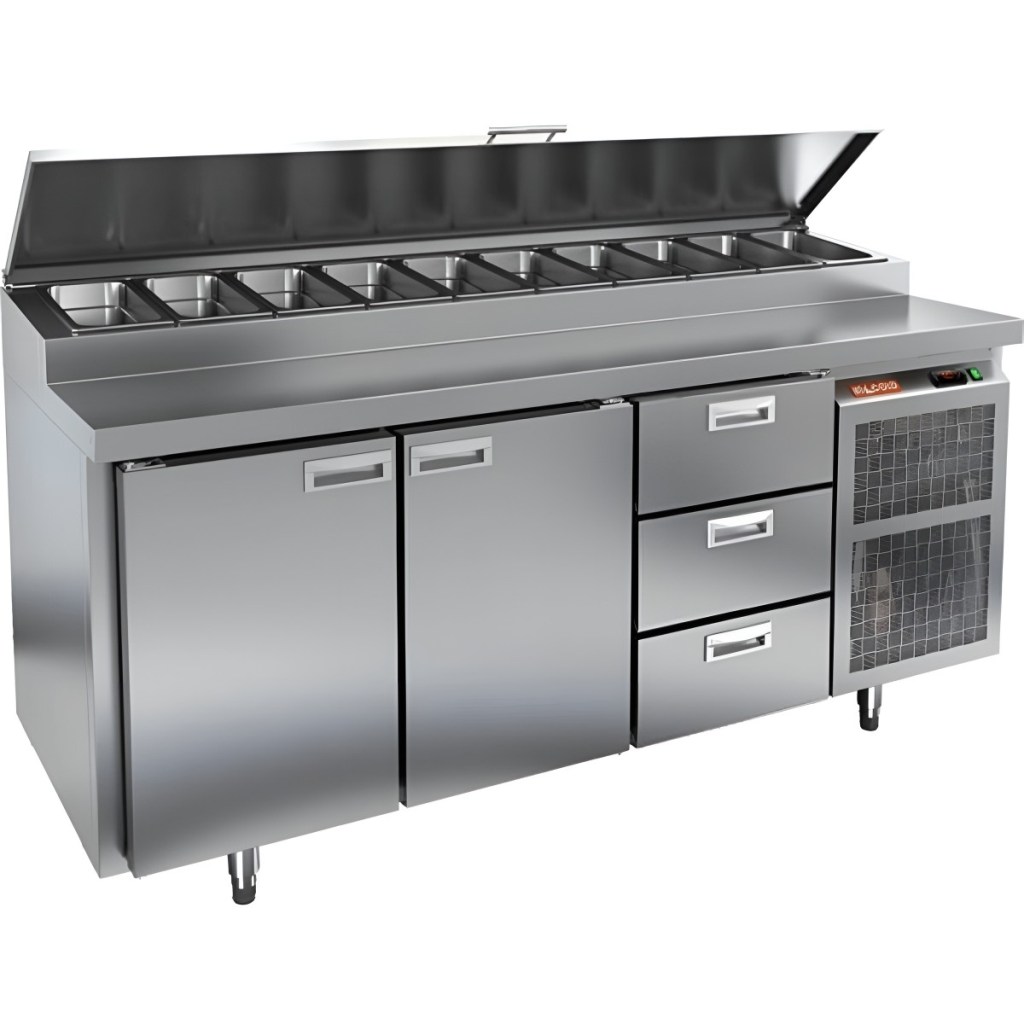 Каталог оборудования Холодильное оборудованиеСтолы охлаждаемыеСтолы холодильные для пиццыСтол холодильный для пиццы HiCold PZ1-113GN (1/3H) Стол холодильный для пиццы HiCold PZ1-113GN (1/3H) Код товара: 064-692 Поделиться: WhatsAppTelegram СравнитьДобавить в КПВ избранное 0 260 272 ₽ В корзину 0 шт Под заказСамовывоз сегодня бесплатно Взять в кредит Купить в лизинг Получить консультацию в WhatsApp Описание Характеристики Отзывы 0 Инструкции 2 Стол холодильный для пиццы HiCold PZ1-113GN (1/3H) — профессиональное оборудование для ресторанов, кафе и предприятий торговли. Он совмещает рабочую поверхность для раскатки теста и подготовки ингредиентов с охлаждаемым блоком для кратковременного хранения продуктов и напитков. Корпус и столешница выполнены из нержавеющей стали, что гарантирует долговечность и лёгкость ухода. Основные особенности: Динамическая система охлаждения — равномерное распределение холода Автоматическая оттайка — поддержка стабильной работы без наледи Электронная панель управления — точная настройка температуры и режимов 2 вместительные полки формата GN 1/1 3 выдвижных ящика для хранения дополнительных ингредиентов Автоматические доводчики дверей с фиксатором открытого положения — удобство загрузки и выгрузки Легкозаменяемые магнитные уплотнители — поддержание герметичности Открытая агрегатная часть — облегчённый доступ к техническим элементам Регулируемые по высоте ножки — установка по уровню Максимальная глубина гастроёмкостей: 150 мм (крайняя правая — 100 мм) Глубина рабочей поверхности: 324 мм Толщина столешницы и теплоизоляции: 50 мм Вместимость салат-бара: до 10 гастроёмкостей Стол холодильный HiCold PZ1-113GN (1/3H) — функциональный и удобный стол для пиццы и салатов, совмещающий рабочую поверхность, охлаждаемый блок, полки и ящики для хранения. Разная глубина гастроёмкостей и продуманная организация рабочего пространства делают его оптимальным решением для профессиональной кухни.Изображение товара, представленного на фото, может отличаться от его фактического вида. Показать все Габаритные размеры1835×700×1000 ммДиапазон рабочей температурыот +2 до +10 °CРасположение агрегатаБоковое Материал столешницыНержавеющая Тип столаС дверьми и ящиками Тип двериГлухая Объём505 лТип гастроемкостейGN 1/3 Количество дверей2 штКоличество ящиков3 штРазмер полки530×325 ммНапряжение220 ВМощность0,5 кВтТип охлажденияДинамическое Тип оттайкиАвтоматическая Габариты в упаковке2000×850×1140 ммВес нетто172 кгВес брутто200 кгБрендHicoldВсе холодильные столы для пиццы HicoldВсе нержавеющие холодильные столы для пиццы Оставить отзыв Еще никто не оставил отзыв на этот товар Паспорт на HICOLD PZ1-113GN.pdfДекларация о соответствии.pdf Ранее просмотрено В наличии Цена по запросу Витрина холодильная Иней LIDA-BRIZ М 3,75 Под заказ 297 352 ₽ Стол холодильный для пиццы HiCold PZ3-211/GN камень Под заказ 224 182 ₽ Стол холодильный для пиццы HiCold PZ2-111GN (1/6) стекло