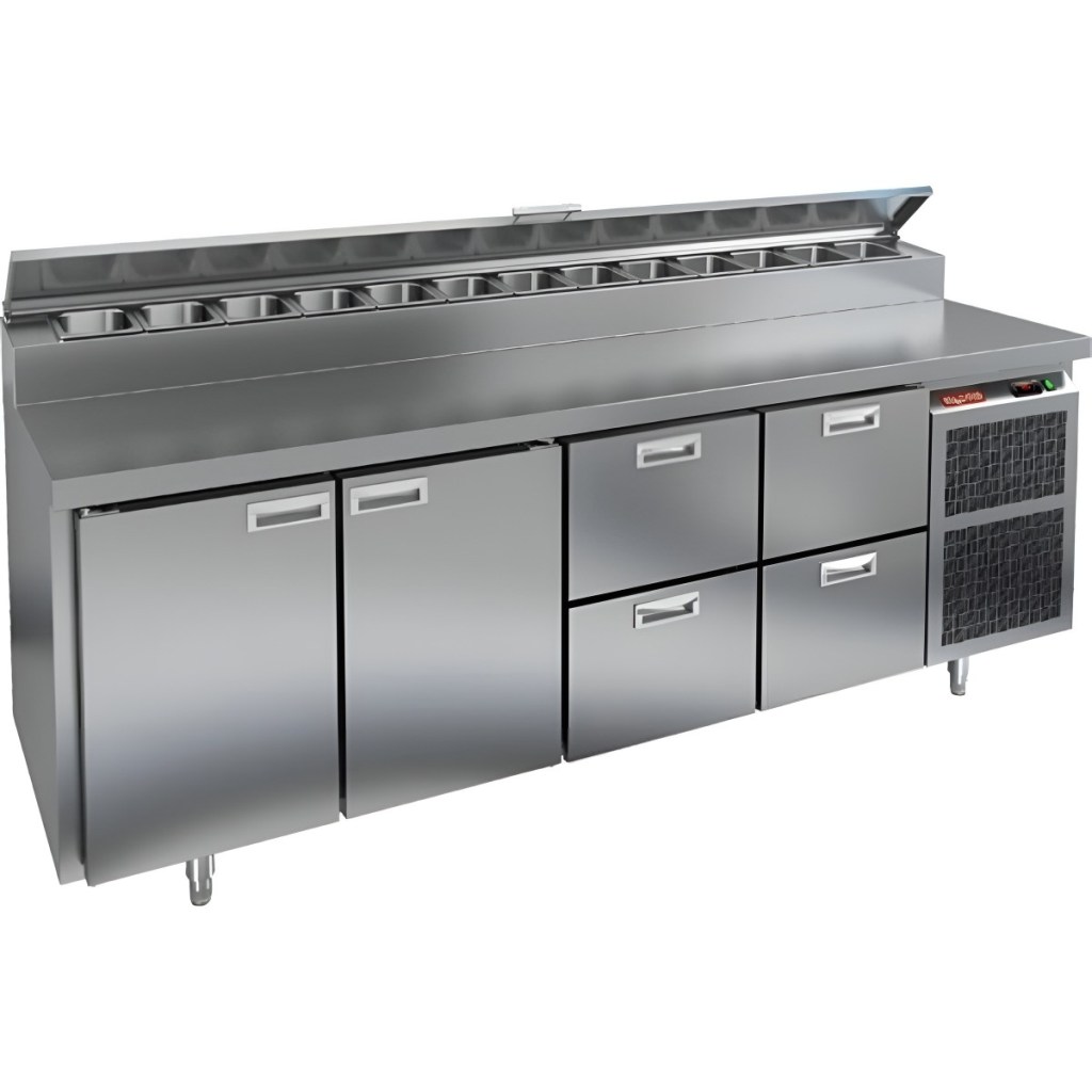 Каталог оборудования Холодильное оборудованиеСтолы охлаждаемыеСтолы холодильные для пиццыСтол холодильный для пиццы HiCold PZ2-1122GN (1/6) Стол холодильный для пиццы HiCold PZ2-1122GN (1/6) Код товара: 064-749 Поделиться: WhatsAppTelegram СравнитьДобавить в КПВ избранное 0 311 842 ₽ В корзину 0 шт Под заказСамовывоз сегодня бесплатно Взять в кредит Купить в лизинг Получить консультацию в WhatsApp Описание Характеристики Отзывы 0 Стол холодильный для пиццы HiCold PZ2-1122GN (1/6) предназначен для кухонь и предприятий общественного питания. Он используется для раскатки теста, подготовки ингредиентов для пиццы, салатов и других блюд, а также для охлаждения и кратковременного хранения скоропортящихся продуктов. Модель совмещает нержавеющую рабочую поверхность и охлаждаемый отсек с 2 дверями и 4 ящиками, обеспечивая удобный доступ к ингредиентам и эффективное хранение. Особенности: Динамическая система охлаждения для равномерного поддержания температуры Автоматическая оттайка для удобного обслуживания Электронная панель управления для точной настройки параметров Вместительная внутренняя полка формата GN 1/1 (размер 530×325 мм) 2 двери и 4 вместительных ящика для хранения ингредиентов Автоматические доводчики дверей с фиксатором открытого положения Легкозаменяемые магнитные уплотнители для герметичности Открытая агрегатная часть для легкого доступа к компонентам Регулируемые по высоте ножки для устойчивости Нержавеющая столешница глубиной 486 мм и толщиной 50 мм — устойчива к коррозии, легко моется и гигиенична Толщина теплоизоляции: 50 мм Максимальная глубина гастроемкостей: 100 мм Вместимость салат-бара: 13 гастроемкости Стол холодильный для пиццы HiCold PZ2-1122GN (1/6) — это надежный и функциональный стол для пиццы. Он объединяет рабочую поверхность и охлаждаемый отсек, упрощает хранение и подготовку ингредиентов, обеспечивает удобство работы повара и соответствует стандартам профессиональной кухни. Изображение товара, представленного на фото, может отличаться от его фактического вида. Показать все Габаритные размеры2280×700×1000 ммДиапазон рабочей температурыот +2 до +10 °CРасположение агрегатаБоковое Материал столешницыНержавеющая Тип столаС дверьми и ящиками Тип двериГлухая Объём570 лТип гастроемкостейGN 1/6 Количество дверей2 штКоличество ящиков4 штРазмер полки530×325 ммНапряжение220 ВМощность0,51 кВтТип охлажденияДинамическое Тип оттайкиАвтоматическая Габариты в упаковке2420×850×1080 ммВес нетто208 кгВес брутто240 кгБрендHicoldВсе холодильные столы для пиццы HicoldВсе нержавеющие холодильные столы для пиццы Оставить отзыв Еще никто не оставил отзыв на этот товар Ранее просмотрено В наличии 186 562 ₽ Стол холодильный для пиццы HiCold PZE1-111GN (1/3) Под заказ 275 842 ₽ Стол холодильный для пиццы HiCold PZ1-33GN (1/3) Под заказ 373 042 ₽ Стол холодильный для пиццы HiCold PZ2-2222GN (1/6)