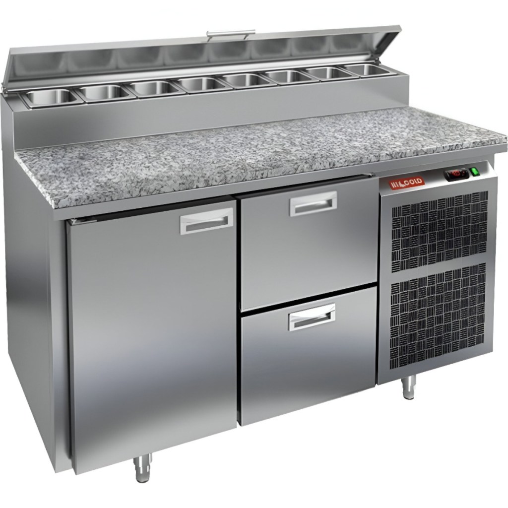 Каталог оборудования Холодильное оборудованиеСтолы охлаждаемыеСтолы холодильные для пиццыСтол холодильный для пиццы HiCold PZ2-12GN (1/6) камень Стол холодильный для пиццы HiCold PZ2-12GN (1/6) камень Код товара: 064-754 Поделиться: WhatsAppTelegram СравнитьДобавить в КПВ избранное 0 238 492 ₽ В корзину 0 шт Под заказСамовывоз сегодня бесплатно Взять в кредит Купить в лизинг Получить консультацию в WhatsApp Описание Характеристики Отзывы 0 Стол холодильный для пиццы HiCold PZ2-12GN (1/6) камень предназначен для кухонь и предприятий общественного питания. Он используется для раскатки теста, подготовки ингредиентов для пиццы, салатов и других блюд, а также для охлаждения и кратковременного хранения скоропортящихся продуктов. Модель совмещает гранитную рабочую поверхность и охлаждаемый отсек с 1 дверью и 2 ящиками, обеспечивая удобный доступ к ингредиентам и эффективное хранение. Особенности: Динамическая система охлаждения для равномерного поддержания температуры Автоматическая оттайка для удобного обслуживания Электронная панель управления для точной настройки параметров Вместительная внутренняя полка формата GN 1/1 (размер 530×325 мм) 1 дверь и 2 вместительных ящика для хранения ингредиентов Автоматические доводчики дверей с фиксатором открытого положения Легкозаменяемые магнитные уплотнители для герметичности Открытая агрегатная часть для легкого доступа к компонентам Регулируемые по высоте ножки для устойчивости Гранитная рабочая поверхность глубиной 486 мм и толщиной 50 мм — устойчива к повреждениям, высоким температурам и царапинам Толщина теплоизоляции: 50 мм Максимальная глубина гастроемкостей: 100 мм Вместимость салат-бара: 8 гастроемкости Стол холодильный HiCold PZ2-12GN (1/6) камень — это надёжный и функциональный стол для пиццы. Он сочетает рабочую поверхность и охлаждаемый отсек, облегчает хранение и подготовку ингредиентов, повышает удобство работы повара и соответствует стандартам профессиональной кухни.Изображение товара, представленного на фото, может отличаться от его фактического вида. Показать все Габаритные размеры1390×700×1000 ммДиапазон рабочей температурыот +2 до +10 °CРасположение агрегатаБоковое Материал столешницыГранитная Тип столаС дверьми и ящиками Тип двериГлухая Объём350 лТип гастроемкостейGN 1/6 Количество дверей1 штКоличество ящиков2 штРазмер полки530×325 ммНапряжение220 ВМощность0,2 кВтТип охлажденияДинамическое Тип оттайкиАвтоматическая Габариты в упаковке1550×850×1140 ммВес нетто172 кгВес брутто210 кгБрендHicoldВсе холодильные столы для пиццы Hicold Оставить отзыв Еще никто не оставил отзыв на этот товар Ранее просмотрено Под заказ 6 102 ₽ 9Полка кухонная для досок МХМ ПКД-900 Под заказ 278 960 ₽ Прилавок для холодных закусок Abat Аста ПВВ(Н)-70КМ-С-03-НШ