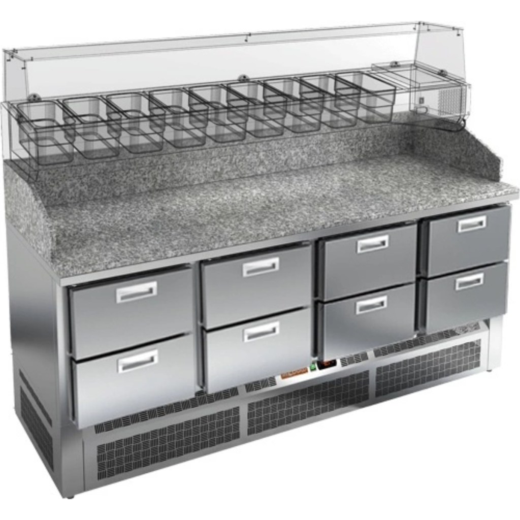 Каталог оборудования Холодильное оборудованиеСтолы охлаждаемыеСтолы холодильные для пиццыСтол холодильный для пиццы HiCold PZE3-222/GN камень Стол холодильный для пиццы HiCold PZE3-222/GN камень Код товара: 064-994 Поделиться: WhatsAppTelegram СравнитьДобавить в КПВ избранное 0 343 342 ₽ В корзину 0 шт Под заказСамовывоз сегодня бесплатно Взять в кредит Купить в лизинг Получить консультацию в WhatsApp Описание Характеристики Отзывы 0 Стол холодильный для пиццы HiCold PZE3-222/GN камень предназначен для использования в пиццериях, кафе, магазинах и ресторанах. Он идеально подходит для раскатки теста, подготовки ингредиентов для пиццы и кратковременного хранения скоропортящихся продуктов. Витрина приобретается отдельно. Особенности модели: Корпус: нержавеющая сталь — прочный, гигиеничный и долговечный Столешница: гранит — устойчива к царапинам, ударам и температурным нагрузкам Охлаждение: динамическое для равномерного поддержания температуры Оттайка: автоматическая — удобство и экономия времени Панель управления: электронная — точная настройка температуры Ножки: регулируемые по высоте — устойчивость на неровной поверхности Ящики: 6 выдвижных ящика — удобное хранение ингредиентов Уплотнители: легкозаменяемые магнитные — герметичность и простота обслуживания Толщина теплоизоляции: 50 мм — сохранение холода и энергоэффективность Рабочая поверхность: глубина 680 мм — удобство работы HiCold PZE3-222/GN камень — надёжный и функциональный холодильный стол с гранитной столешницей, который сочетает прочность, удобство в работе и эффективное охлаждение продуктов. Он станет универсальным решением для профессиональной кухни, где важны скорость, организация и сохранение свежести ингредиентов. Изображение товара, представленного на фото, может отличаться от его фактического вида. Показать все Габаритные размеры1485×700×1050 ммДиапазон рабочей температурыот +2 до +10 °CРасположение агрегатаНижнее Материал столешницыГранитная Тип столаС ящиками Объём375 лКоличество ящиков6 штРазмер полки530×325 ммНапряжение220 ВМощность0,2 кВтТип охлажденияДинамическое Тип оттайкиАвтоматическая Габариты в упаковке1700×850×1280 ммВес нетто227 кгВес брутто280 кгБрендHicoldВсе холодильные столы для пиццы HicoldВсе нержавеющие холодильные столы для пиццы Оставить отзыв Еще никто не оставил отзыв на этот товар Ранее просмотрено Под заказ 351 262 ₽ Стол холодильный для пиццы HiCold PZ2-1122GN (1/6) камень