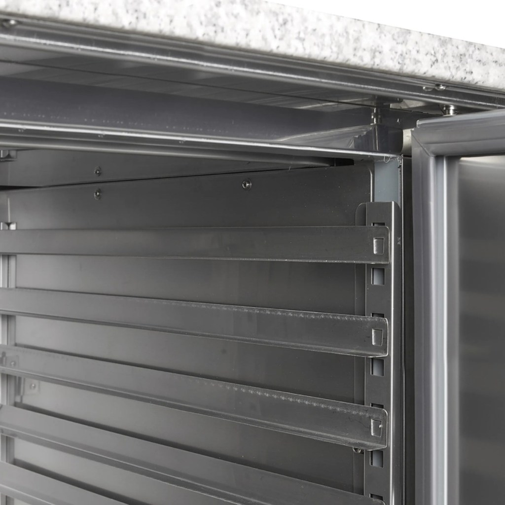 Каталог оборудования Холодильное оборудованиеСтолы охлаждаемыеСтолы холодильные для пиццыСтол холодильный для пиццы TEFCOLD PT1200 Стол холодильный для пиццы TEFCOLD PT1200 Код товара: 066-708 Поделиться: WhatsAppTelegram 0 Цена по запросу Получить консультацию в WhatsApp Описание Характеристики Отзывы 0 Инструкции 3 Стол холодильный для пиццы TEFCOLD PT1200 предназначен для охлаждения продуктов и раскатки теста для пиццы на предприятиях общественного питания и торговли. Корпус и внутренняя обшивка выполнены из нержавеющей стали AISI 304, что обеспечивает долговечность и лёгкую санитарную обработку. В витрине-надстройке можно хранить ингредиенты для приготовления пиццы. Гастроемкости в комплект не входят. Особенности: Вентилируемое охлаждение для равномерного распределения температуры; Автоматическое размораживание для упрощения эксплуатации; Электронный термостат для точного контроля температуры; Экологичный хладагент R600a; Самозакрывающиеся двери; 7 комплектов направляющих для поддонов для пиццы; Климатический класс 4; Полезный объем: 370 л; Потребляемая энергия: 2,32 кВт/сутки; Уровень шума: 42 дБ; Количество хладагента: 95 г; Размеры полок: 400×600 мм; Внутренние размеры: 1052×630×589 мм; Регулируемые по высоте ножки. Tefcold PT1200 — это функциональный и надёжный холодильный стол для предприятий общественного питания, обеспечивающий удобное хранение ингредиентов и качественное охлаждение продуктов при приготовлении пиццы. Компактный дизайн, прочный корпус из нержавеющей стали и электронное управление делают модель удобной и долговечной в эксплуатации.Изображение товара, представленного на фото, может отличаться от его фактического вида. Показать все Габаритные размеры1510×800×1445 ммДиапазон рабочей температурыот +2 до +10 °CРасположение агрегатаБоковое Материал столешницыГранитная Тип столаС дверьми Тип двериГлухая Полезный объем370 лОбъём390 лКоличество дверей2 штРазмер полки400×600 ммНапряжение220 ВМощность0,34 кВтРасход электроэнергии в сутки2,32 кВтТип охлажденияДинамическое Тип оттайкиАвтоматическая ХладагентR600a СтолешницаС бортом Габариты в упаковке1550×840×1050 ммВес нетто243 кгБрендTefcoldВсе нержавеющие холодильные столы для пиццы Оставить отзыв Еще никто не оставил отзыв на этот товар Брошюра на TEFCOLD PT1200.pdfИнструкция на TEFCOLD PT1200.pdfКласс энергоэффективности.pdf Ранее просмотрено Под заказ 277 735 ₽ Сплит-система холодильная низкотемпературная Belluna Frost P310 Под заказ 4 338 ₽ ПВХ завеса Север 400х4 перекр. 100 мм Под заказ 225 514 ₽ Сплит-система холодильная среднетемпературная Intercold MCM 335 PR FT (опция -30° С)