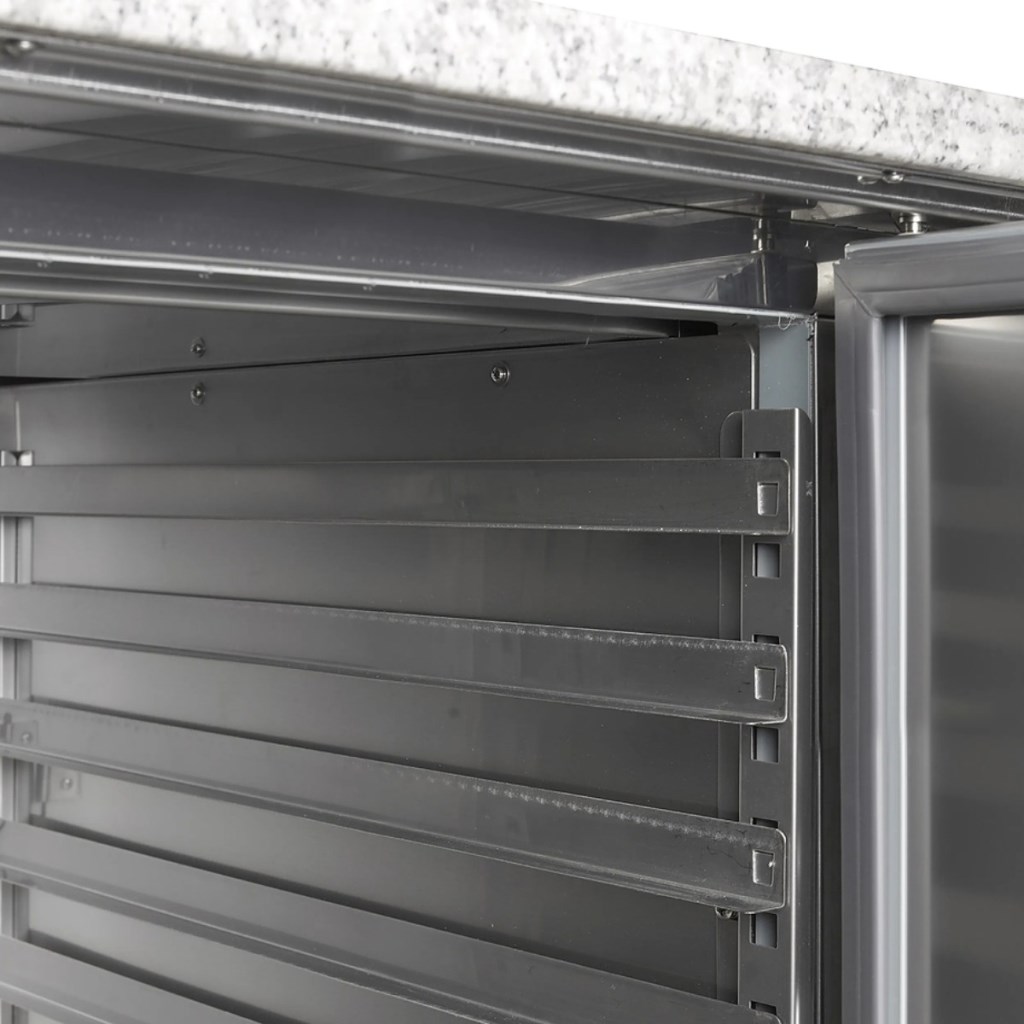 Каталог оборудования Холодильное оборудованиеСтолы охлаждаемыеСтолы холодильные для пиццыСтол холодильный для пиццы TEFCOLD PT1300 Стол холодильный для пиццы TEFCOLD PT1300 Код товара: 066-709 Поделиться: WhatsAppTelegram 0 Цена по запросу Получить консультацию в WhatsApp Описание Характеристики Отзывы 0 Стол холодильный для пиццы TEFCOLD PT1300 предназначен для обработки ингредиентов, охлаждения и кратковременного хранения продуктов на предприятиях общественного питания и торговли. Корпус и внутренняя обшивка выполнены из нержавеющей стали AISI 304, что обеспечивает долговечность и легкость ухода. Особенности : Динамическое охлаждение для равномерного распределения температуры; Автоматическое размораживание; Электронный термостат; Экологически безопасный хладагент R600a; Самозакрывающиеся двери; Градусник для контроля температуры; 7 комплектов направляющих для поддонов для пиццы; 6 регулируемых по высоте ножек; Климатический класс 4; Полезный объем: 565 л; Энергопотребление: 3,645 кВт/сутки; Уровень шума: 42 дБ; Масса хладагента: 0,095 кг; Внутренние размеры: 1562×630×589 мм. TEFCOLD PT1300 — функциональный и надежный стол для профессиональных кухонь, обеспечивающий эффективное охлаждение и хранение ингредиентов для пиццы. Прочный корпус из нержавеющей стали и динамическая система охлаждения делают его удобным в эксплуатации и долговечным.Изображение товара, представленного на фото, может отличаться от его фактического вида. Показать все Габаритные размеры2045×800×1445 ммДиапазон рабочей температурыот +2 до +10 °CРасположение агрегатаБоковое Материал столешницыГранитная Тип столаС дверьми Тип двериГлухая Полезный объем565 лОбъём580 лКоличество дверей3 штРазмер полки400×600 ммНапряжение220 ВМощность0,3 кВтРасход электроэнергии в сутки3,645 кВтТип охлажденияДинамическое Тип оттайкиАвтоматическая ХладагентR600a СтолешницаС бортом Габариты в упаковке2050×840×1050 ммВес нетто318 кгБрендTefcold Оставить отзыв Еще никто не оставил отзыв на этот товар Ранее просмотрено В наличии Цена по запросу Стол холодильный для пиццы TEFCOLD PT1365