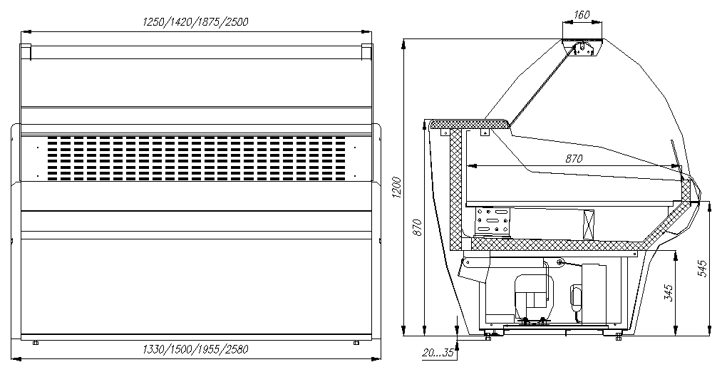 Carboma G110 VV 2,5-1 (ВХСр-2,5 Carboma G110 (динамика)) — функциональная холодильная витрина с удобным доступом к продуктам, энергоэффективным управлением и возможностью индивидуального исполнения, идеально подходящая для предприятий общепита и торговли.
