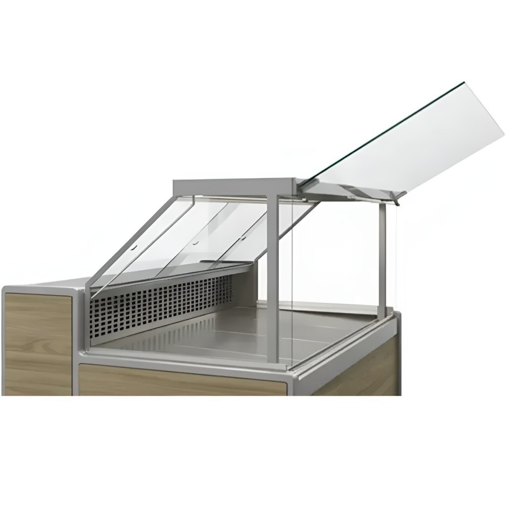 • Подъёмное фронтальное стекло — облегчает доступ к продукции и упрощает выкладку.