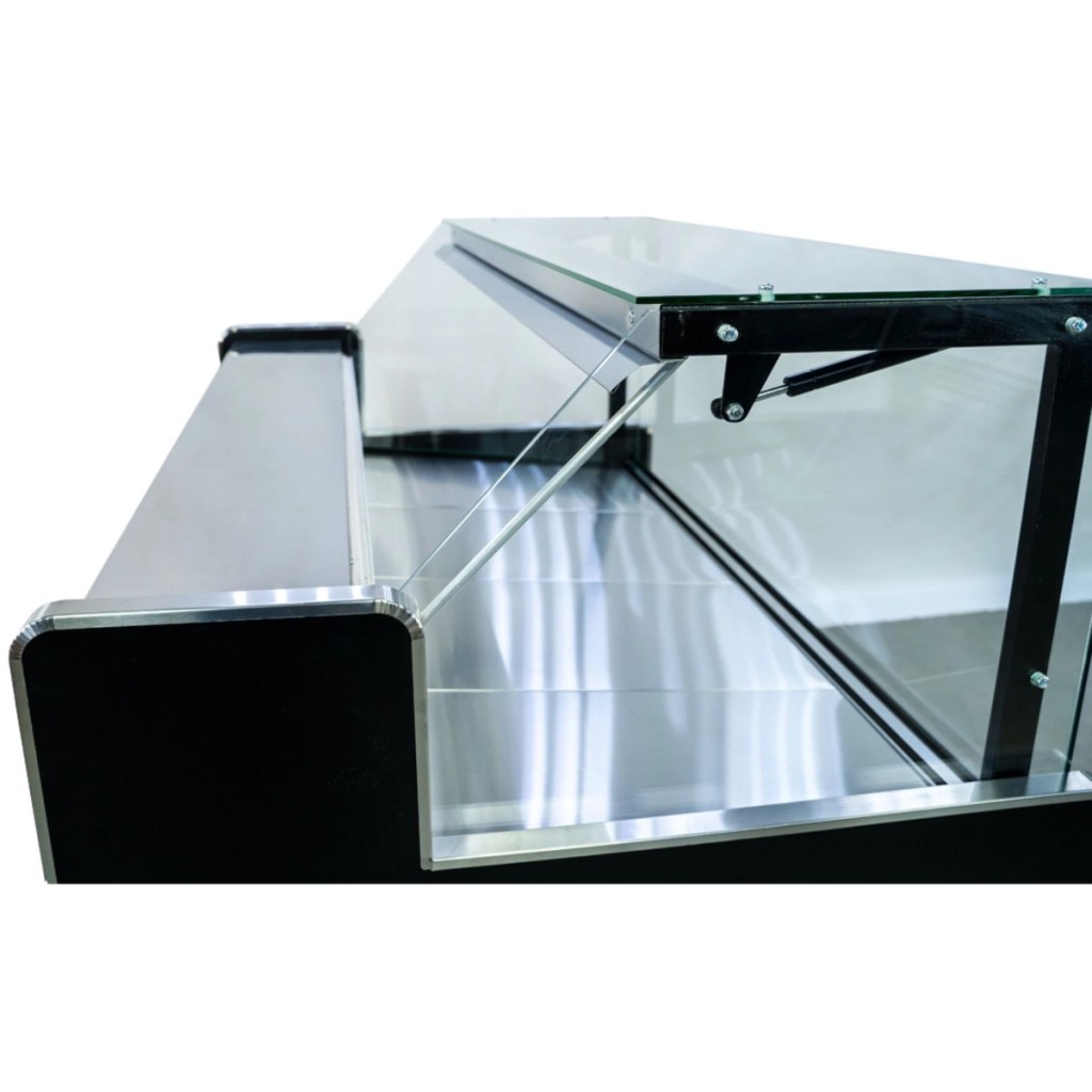 Материалы поверхности: нержавеющая сталь для выкладки, подтоварники из оцинкованной стали с полимерным покрытием, столешницы из нержавеющей стали.
