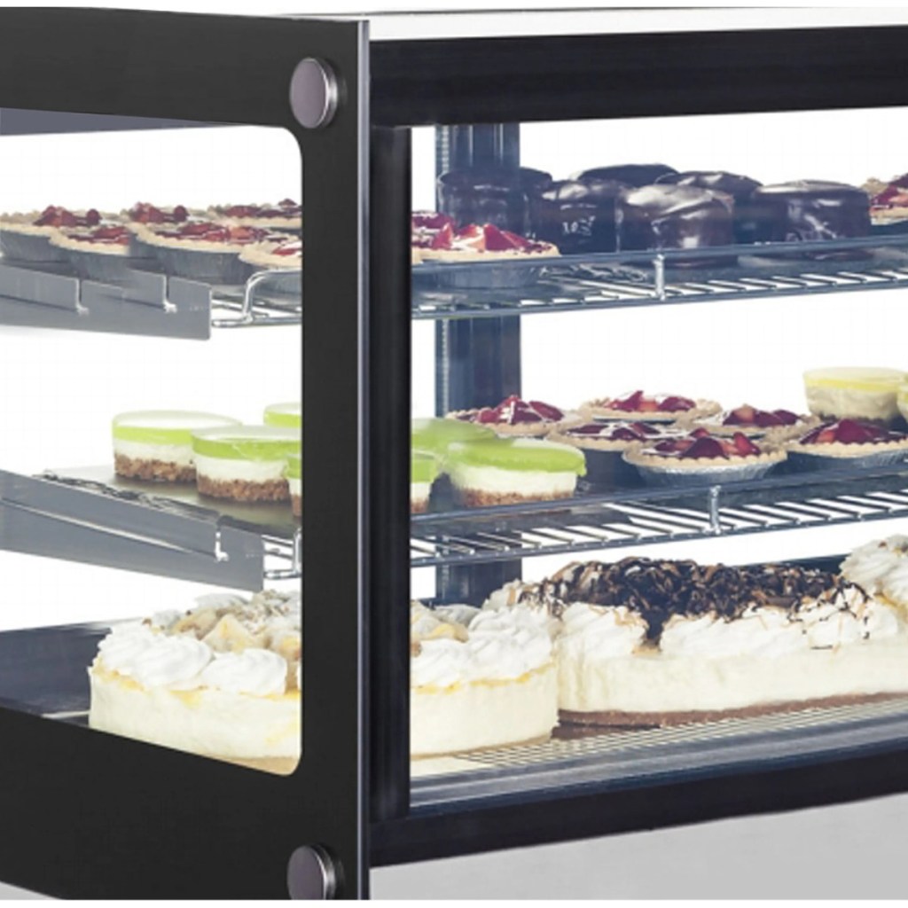 TEFCOLD LCT750F/BLACK — компактная и функциональная настольная витрина для кафе, кондитерских и магазинов. Она обеспечивает эффектную демонстрацию и равномерное охлаждение продукции, сохраняет свежесть и внешний вид блюд, облегчает работу персонала благодаря удобной конструкции, LED-подсветке и раздвижным дверцам.